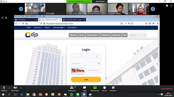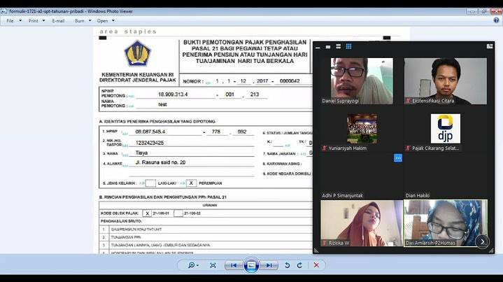 Kelas pajak kali ini diikuti kurang lebih 26 peserta wajib pajak orang pribadi karyawan. Sementara itu, yang bertugas sebagai narasumber adalah Adhi Putra Simanjuntak, Account Representative KPP Pratama Cikarang Utara. Kelas pajak daring ini diisi dengan sesi simulasi pengisian SPT Tahunan langsung serta sesi tanya jawab dengan para peserta.