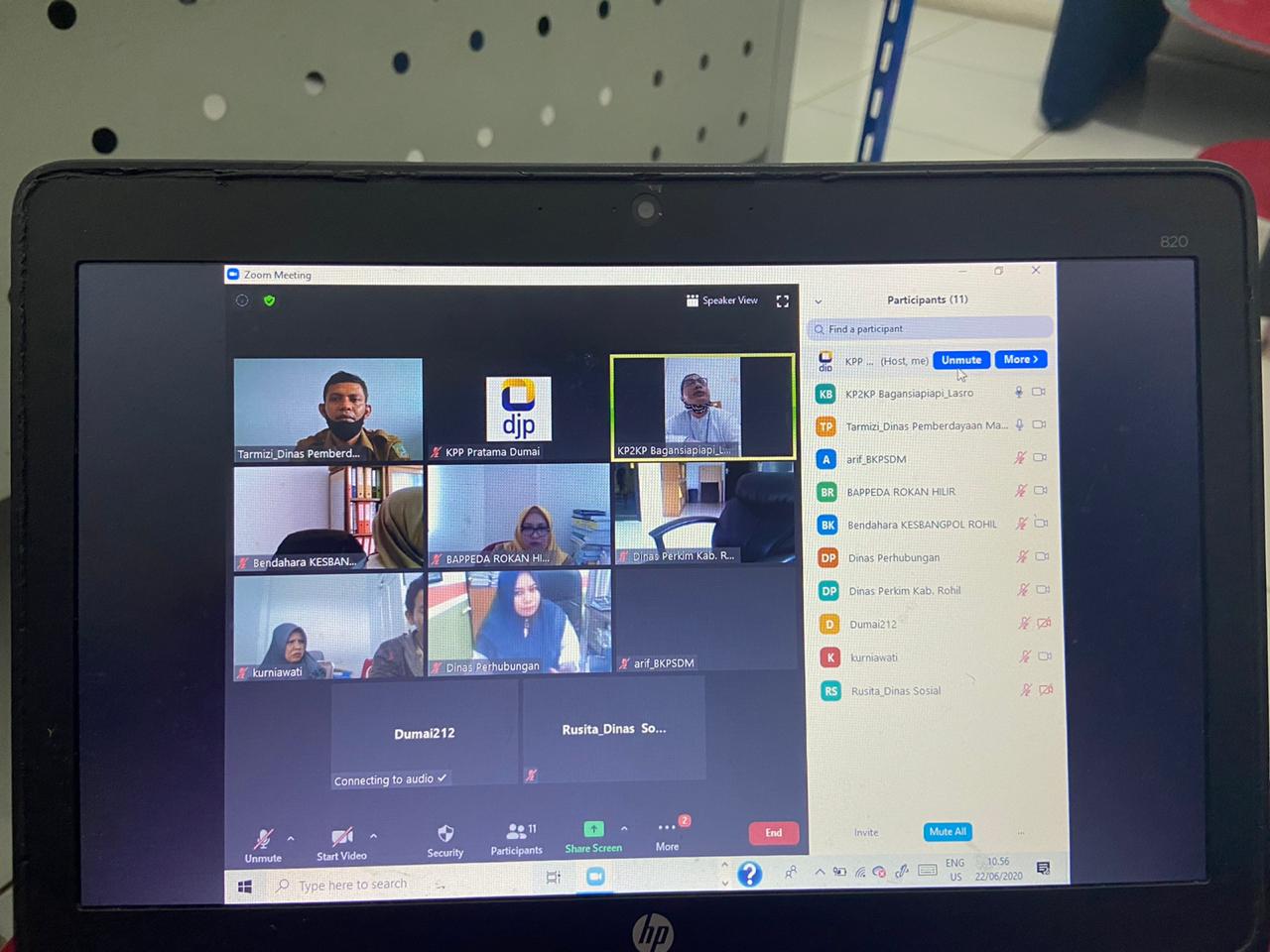 KP2KP Bagansiapiapi kembali mengadakan kelas pajak daring dengan topik PMK-231/PMK.03/2019 terkait NPWP Instansi Pemerintah yang diselenggarakan melalui aplikasi Zoom Meeting di KP2KP Bagansiapiapi (Senin, 22/6). Kelas pajak dengan topik ini juga diselenggarakan KP2KP Bagansiapiapi pada pekan sebelumnya yakni Selasa, 16 Juni 2020 dengan peserta yang dikhususkan untuk bendahara dana desa dan pembahasan materinya hanya seputar NPWP Bendahara Desa.