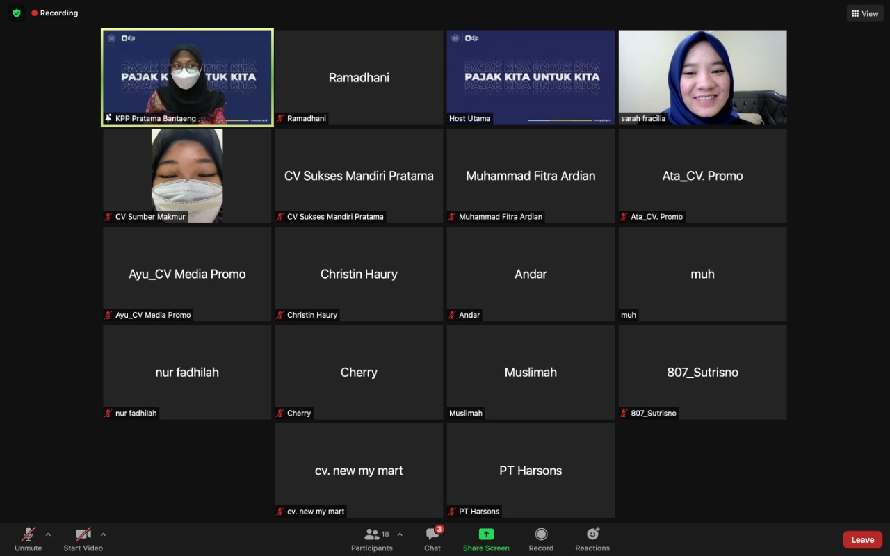 Kantor Pelayanan Pajak (KPP) Pratama Bantaeng mengadakan kegiatan kelas pajak daring terkait Peraturan Menteri Keuangan (PMK) No. 82 dan PMK No. 83 Tahun (Selasa, 31/8). Acara ini dilangsungkan via aplikasi zoom meeting di ruang rapat KPP Pratama Bantaeng, Kabupaten Bantaeng.