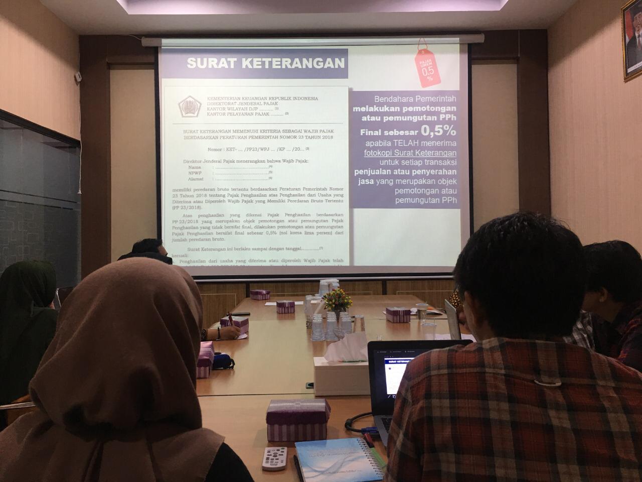 KPP Pratama Samarinda Ilir menyelenggarakan kelas pajak bagi bendahara pemerintah di lingkungan Kota Samarinda bertempat di ruang rapat lantai 3 KPP Pratama Samarinda Ilir (Kamis, 12/12).