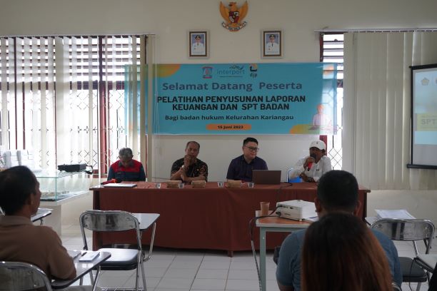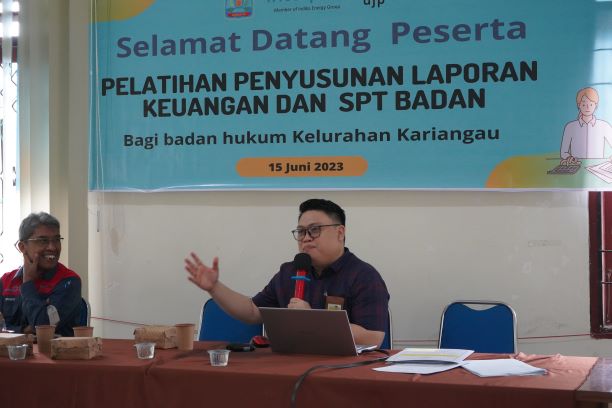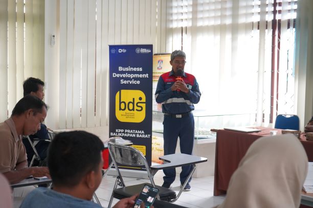 Fungsional Penyuluh Pajak Balikpapan Barat Riky Rapasyiwih menjadi narasumber dalam kegiatan Business Development Services (BDS) Program Corporate Social Responsibility (CSR) PT Interport Mandiri Utama di Aula Kantor Kelurahan Kariangau, Kota Balikpapan (Kamis, 15/6). Kegiatan ini mendapat apresiasi oleh lima belas peserta yang merupakan wajib pajak yang terdaftar di Kantor Pelayanan Pajak (KPP) Pratama Balikpapan Barat sekaligus badan usaha binaan dari program CSR PT Interport Mandiri Utama.
