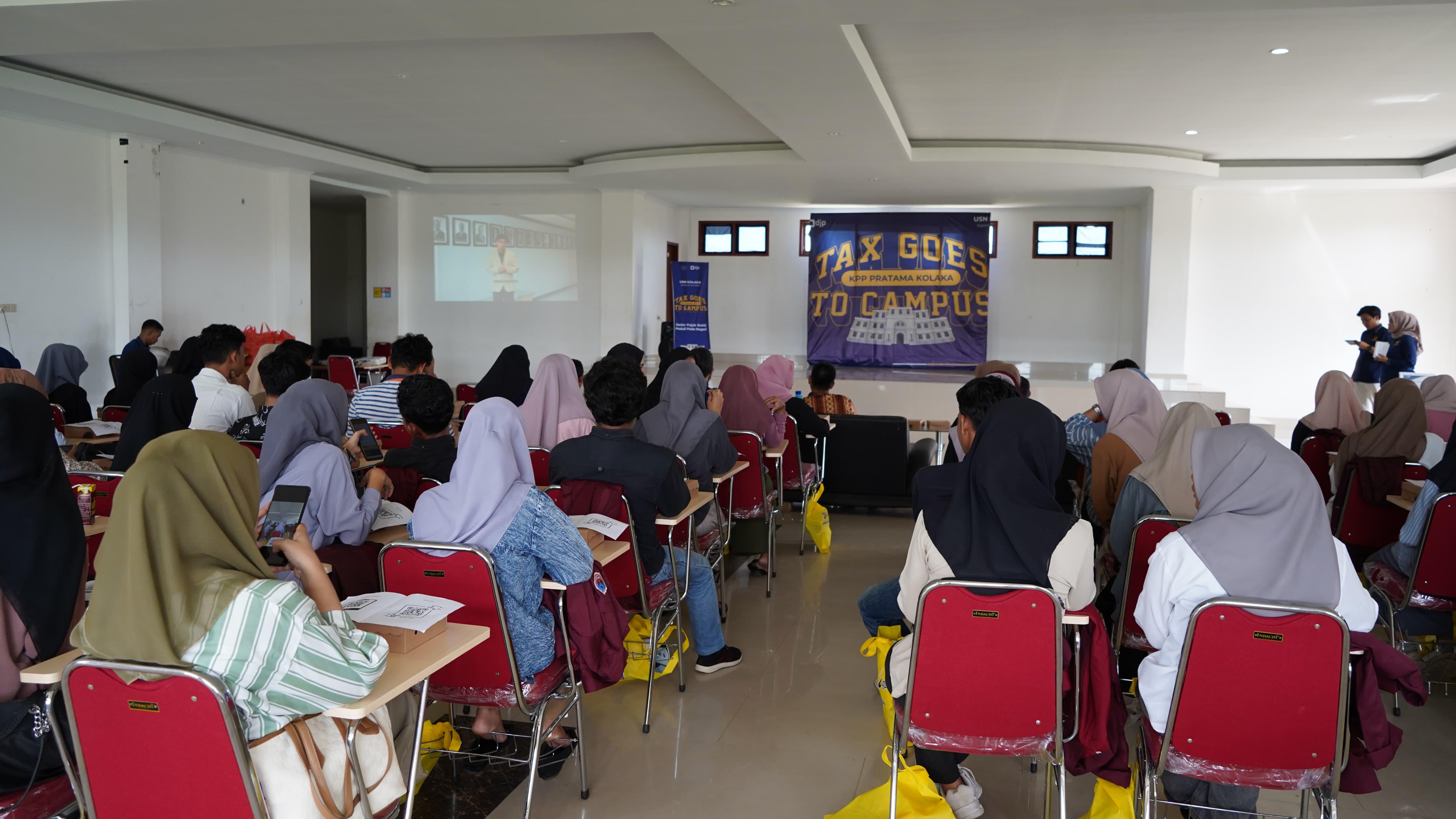 Kantor Pelayanan Pajak (KPP) Pratama Kolaka melaksanakan kegiatan Tax Goes To Campus (TGTC) dengan melibatkan mahasiswa Fakultas Ilmu Sosial dan Ilmu Ekonomi (FISIE) Universitas Sembilanbelas November (USN) Kolaka (Kamis, 13/6). Kegiatan berlangsung di Aula Lantai 3 Gedung Fakultas Sainstek USN Kolaka yang berada di Kecamatan Tanggetada, Kabupaten Kolaka.