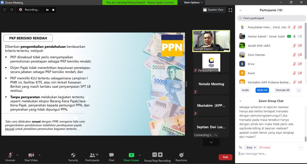 Kanwil DJP Sulawesi Selatan, Barat, dan Tenggara (Sulselbartra) mengadakan Sosialisasi Perpajakan terkait Insentif Pajak yang dikemas dalam acara kelas pajak daring melalui aplikasi Zoom di Makassar (Kamis, 14/5). Kegiatan bertajuk 'Sosialisasi PMK-44/PMK.03/2020 tentang Insentif Pajak untuk Wajib Pajak Terdampak Pandemi Covid-19' ini diikuti oleh Wajib Pajak Orang Pribadi maupun perwakilan Wajib Pajak Badan di wilayah Kota Makassar dan sekitarnya.