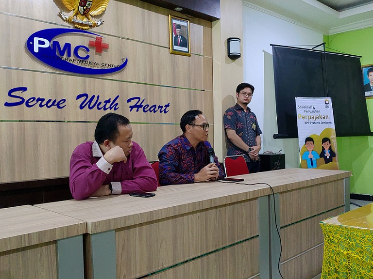 KPP Pratama Jombang melaksanakan Sosialisasi PPh Pasal 21 bagi Dokter bertempat di RS Pelengkap Medical Center, Jombang (Jumat, 6/3). Kegiatan ini dihadiri oleh pimpinan, direktur, dan beberapa dokter yang bekerja di RS Pelengkap Medical Center. Kegiatan ini dimaksudkan agar para dokter di RS Pelengkap Medical Center mengerti dan memahami mekanisme pemotongan PPh pasal 21 bagi dokter.