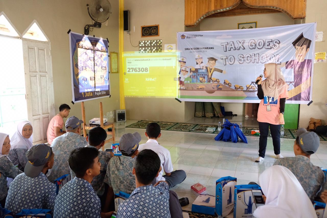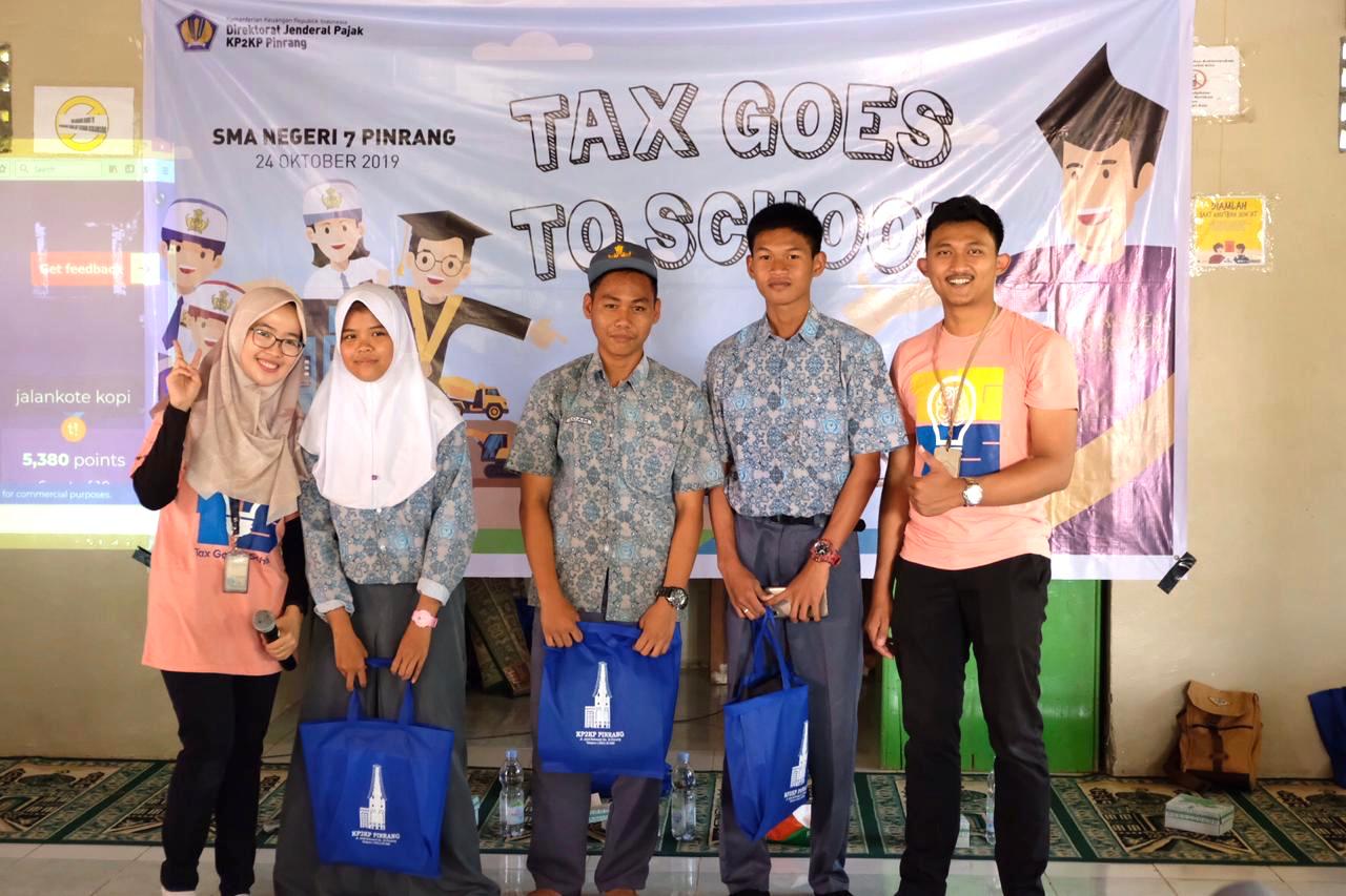 Kantor Pelayanan, Penyuluhan, Dan Konsultasi Perpajakan (KP2KP) Pinrang menyelenggarakan kegiatan edukasi perpajakan pada generasi muda melalui acara Tax Goes To School (TGTS) di SMA Negeri 7 Pinrang (Kamis, 21/10). Acara dimulai pukul 09.30 dan diikuti oleh siswa kelas XI IPS sebanyak 50 siswa, peserta antusias dalam mengikuti materi yang disampaikan serta diskusi dengan memberikan pertanyaan pada pemateri dari KP2KP Pinrang.