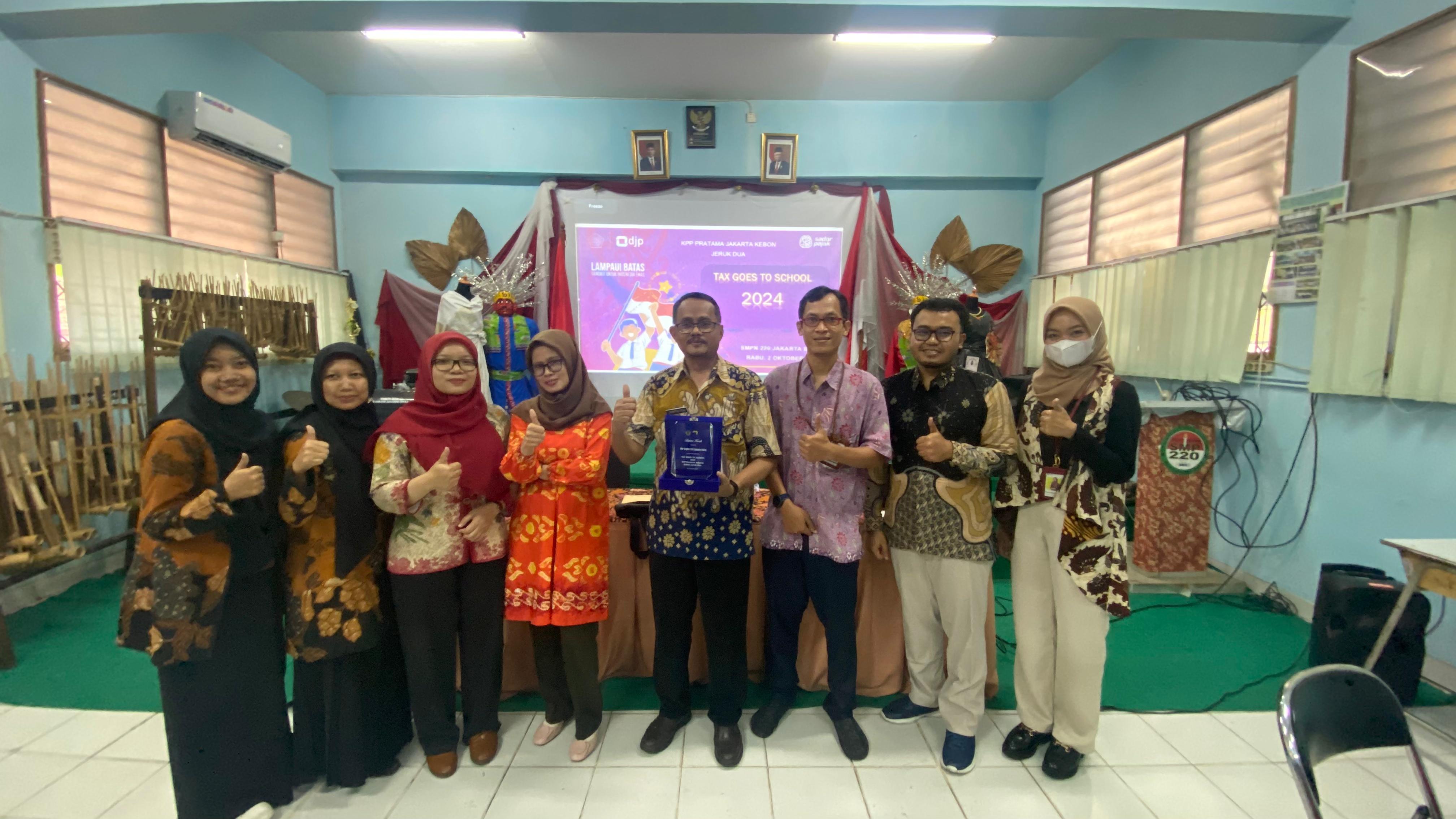 Kantor Pelayanan Pajak (KPP) Pratama Jakarta Kebon Jeruk Dua kembali menyelenggarakan Tax Goes to School (TGTS) di Aula Sekolah Menengah Pertama Negeri (SMPN) 220 Jakarta, Jakarta Barat (Rabu, 2/10). Kegiatan TGTS merupakan rangkaian kegiatan Direktorat Jenderal Pajak (DJP) dalam memberikan sosialisasi dan perkenalan pajak ke lingkungan masyarakat yang lebih lebih dini, yakni tingkat pendidikan atau bangku sekolah.