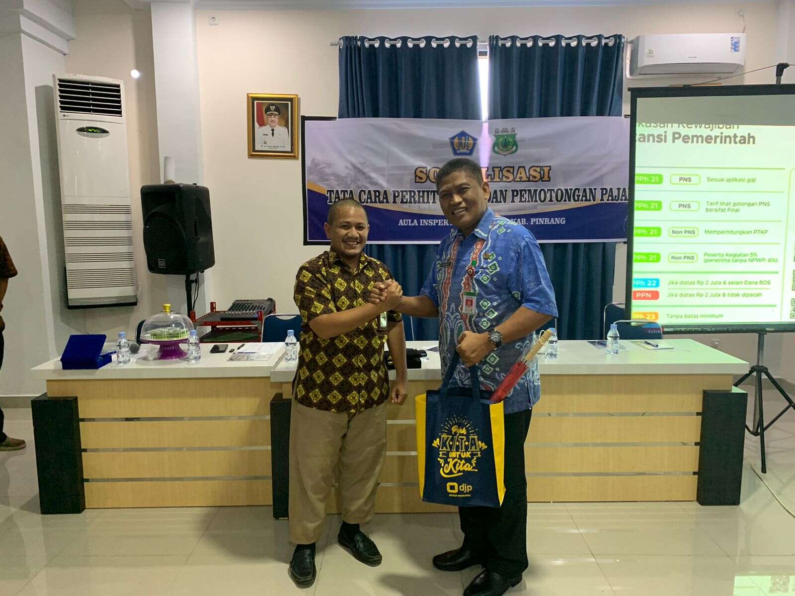 Kantor Pelayanan, Penyuluhan, dan Konsultasi Perpajakan (KP2KP) Pinrang bersama Kantor Pelayanan Pajak (KPP) Pratama Parepare menyelenggarakan sosiasliasi perpajakan kepada para ASN Inspektorat Daerah Pinrang, Kabuapaten Pinrang (Jumat, 5/8).