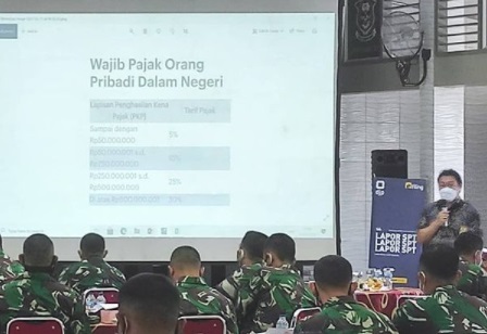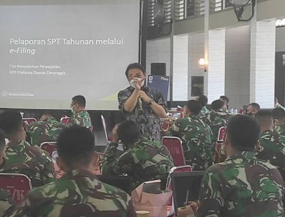 Sinergi bersama TNI, KPP Pratama Depok Cimanggis kunjungi Markas TNI Divisi-I Infanteri Kostrad Prakasa Vira Gupti untuk memberikan layanan asistensi pengisian SPT Tahunan melalui e-Filing dan sosialisasi perpajakan kepada seluruh anggota TNI dan PNS di lingkup Divisi-I, Depok (Kamis, 11/3).