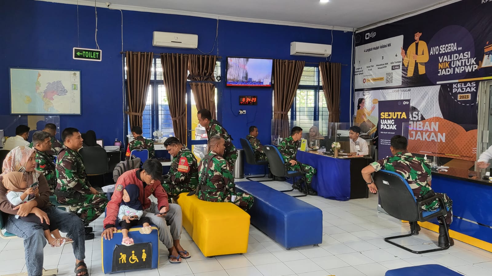 Anggota Kodim 1426 Takalar beramai-ramai mendatangi Tempat Pelayanan Terpadu (TPT) Kantor Pelayanan, Penyuluhan, dan Konsultasi Perpajakan (KP2KP) Takalar yang berlokasi di Jalan Badaming Dg Rani Nomor 12 Lingkungan Kalampa Kelurahan Kalabbirang, Kecamatan Pattallassang, Kabupaten Takalar (Senin, 8/1). Kehadiran anggota Kodim 1426 Takalar dalam rangka aktivasi EFIN, pemadanan NIK-NPWP dan asistensi penyampaian SPT Tahunan melalui e-filing.