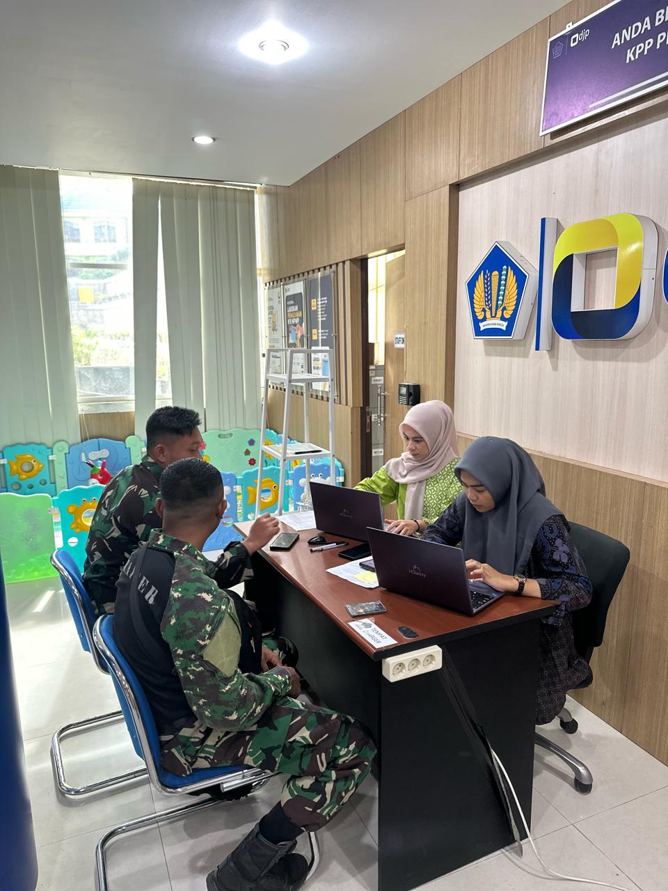 Kantor Pelayanan Pajak (KPP) Pratama Tanjung Redeb bersama Relawan Pajak untuk Negeri atau Renjani dari Universitas Terbuka Tarakan memberikan asistensi pelaporan Surat Pemberitahuan (SPT) Tahunan kepada wajib pajak dari Batalyon Infanteri 613/Raja Alam di Kota Tarakan (Jumat, 16/2).