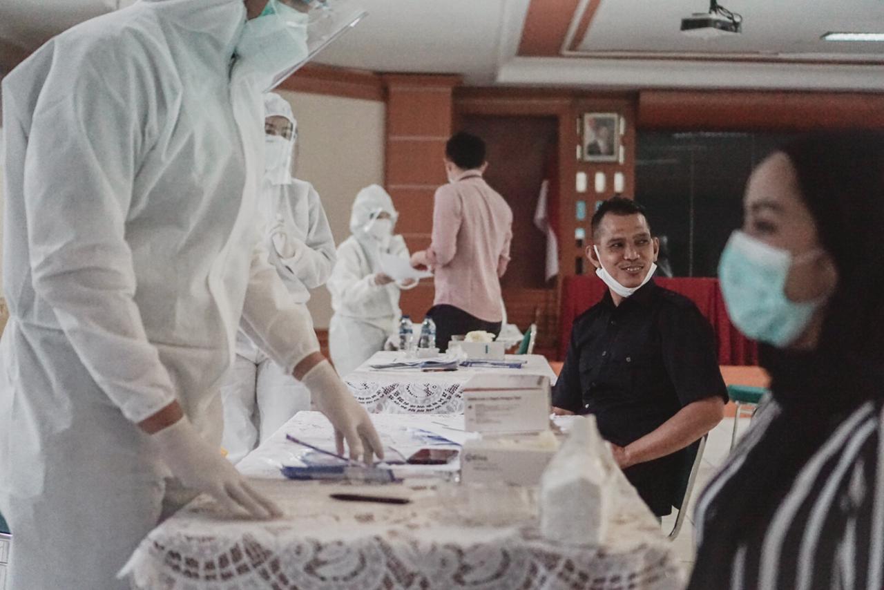 Kegiatan yang berlangsung di aula Kanwil DJP Jawa Barat II ini dibagi dalam beberapa sesi untuk menghindari kerumunan. Tak hanya itu, sesuai Prosedur Operasi Standar, Tim Medis dari Parahita Diagnostic Center pun menggunakan APD lengkap ketika mengambil sampel dari pegawai.