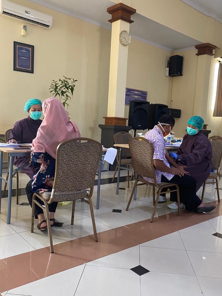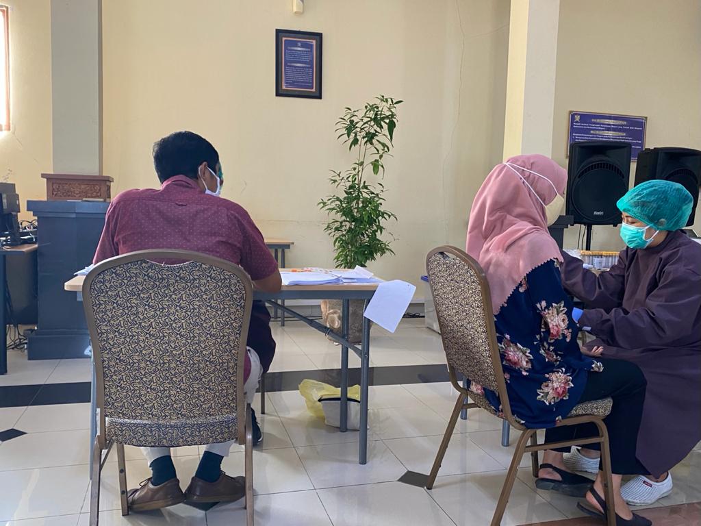 Kegiatan ini pun dijadwalkan dalam dua hari berturut-turut untuk mengurangi interaksi antarpegawai. Berdasarkan pemeriksaan sampel darah, hasil tes menunjukkan bahwa terdapat satu pegawai yang reaktif yaitu seorang satpam dan yang bersangkutan telah melakukan tes usap dan isolasi mandiri hingga hasil tes usapnya menyatakan negatif Covid-19.