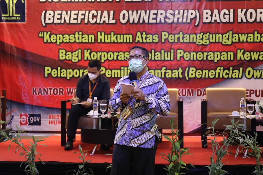 Suyamto turut mengingatkan peserta bahwa dalam rangka mengantisipasi penghindaran pajak, terdapat sanksi yang tegas bagi perusahaan yang tidak melaporkan siapa pemilik manfaat sebenarnya dari perusahaan sesuai dengan Peraturan Presiden Republik Indonesia Nomor 13 Tahun 2018.