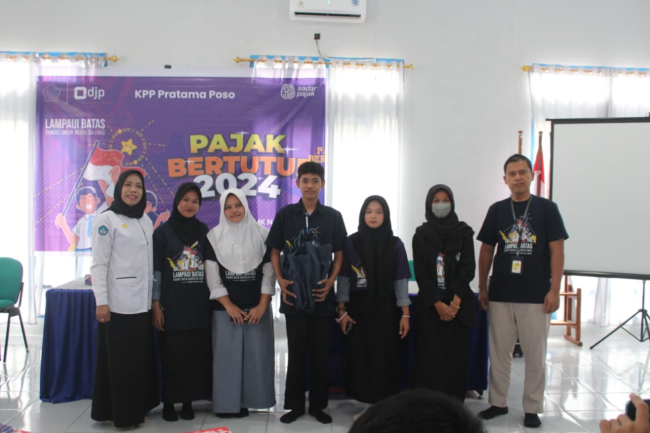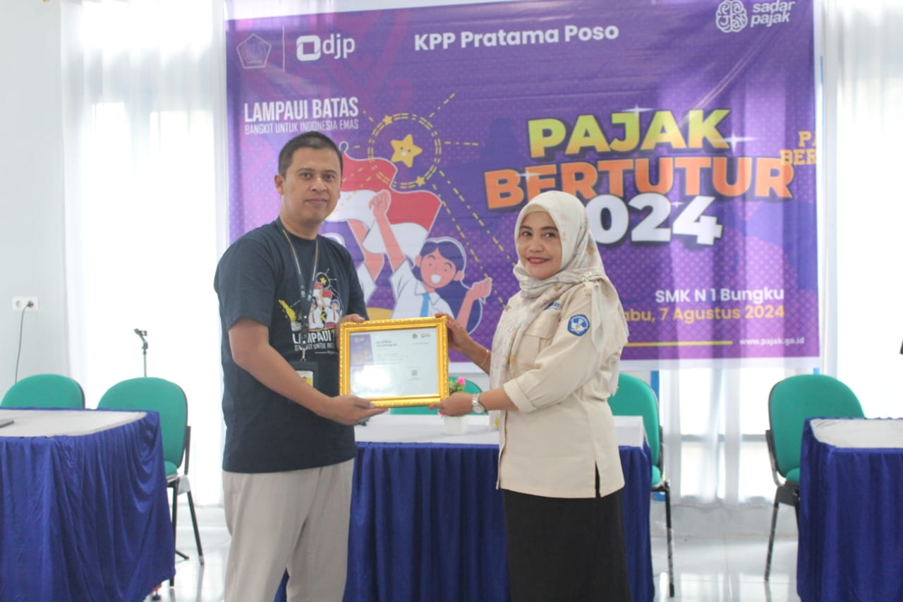 Kantor Pelayanan Pajak (KPP) Pratama Poso melaksanakan Pajak Bertutur 2024 di Sekolah Menengah Kejuruan (SMK) Negeri 1 Bungku Tengah yang berlokasi di Jalan Pendidikan No. 3, Kelurahan Tofuti, Kecamatan Bungku Tengah, Kabupaten Morowali, Provinsi Sulawesi Tengah (Rabu, 7/8). Bertempat di aula SMK Negeri 1 Bungku Tengah, acara ini dimulai pada pukul 08.30 WITA dan dihadiri oleh pejabat sekolah, guru, dan puluhan murid SMK Negeri 1 Bungku Tengah.
