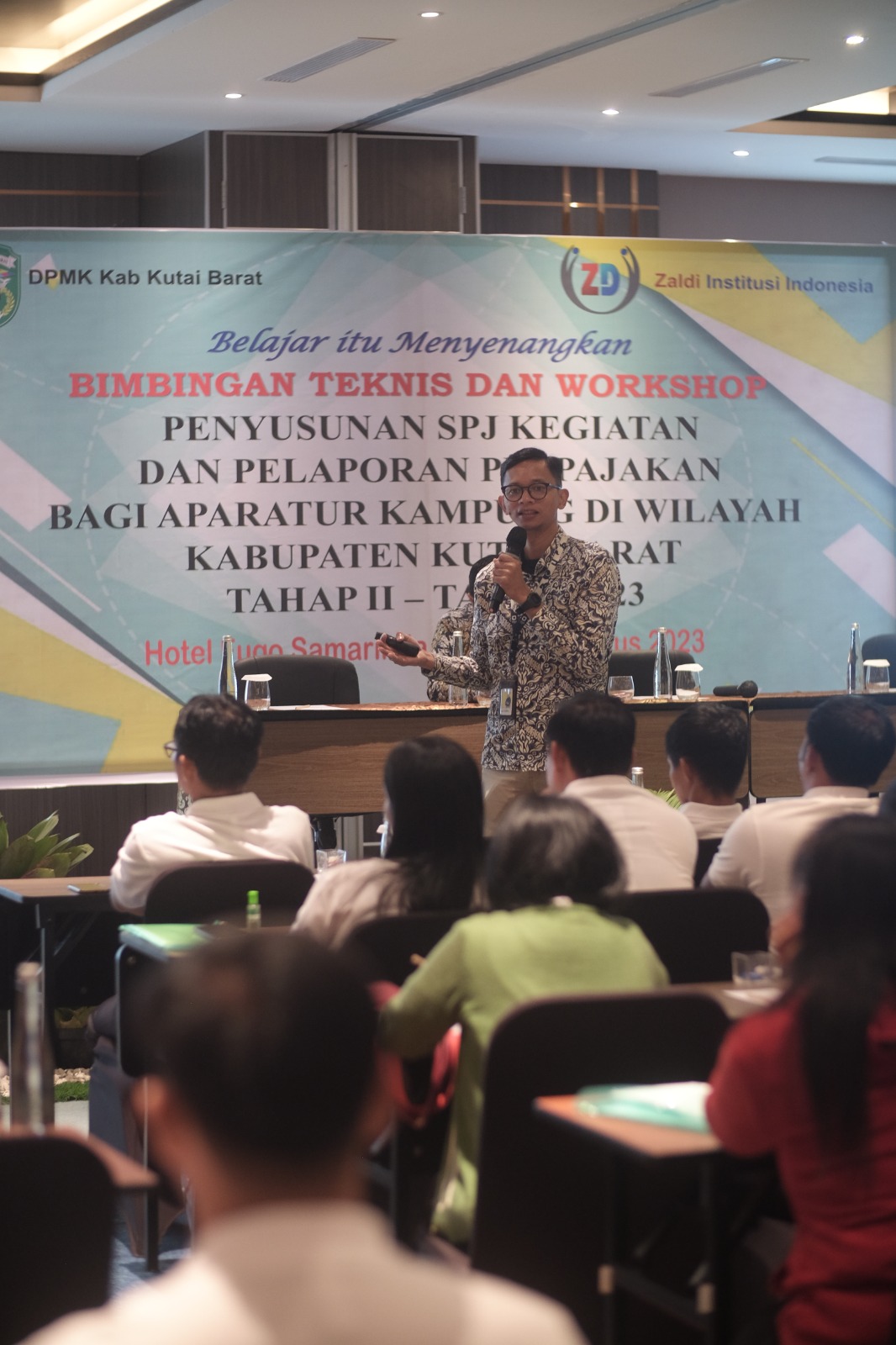 Tim Penyuluh Pajak Kantor Wilayah Direktorat Jenderal Pajak Kalimantan Timur dan Utara (Kanwil DJP Kaltimtara) menjadi salah satu narasumber pada Bimbingan Teknis (Bimtek) dan Lokakarya Penyusunan SPJ dan Pelaporan Perpajakan bagi Aparatur Kampung se-Kutai Barat. Bimtek yang dihadiri oleh kepala desa, bendahara, dan aparatur desa lainnya ini dilaksanakan di Ruang Mandapa Hotel Fugo, Kota Samarinda, Kalimantan Timur (Rabu, 2/8).