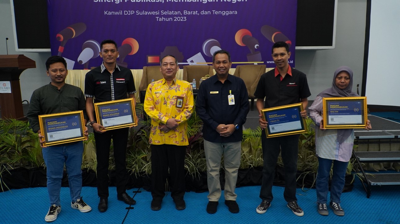 Dalam kesempatan ini juga, Kanwil DJP Sulselbartra memberikan penghargaan kepada insan media yang telah membantu Kanwil DJP Sulselbartra dalam publikasi perpajakan selama tahun 2023.