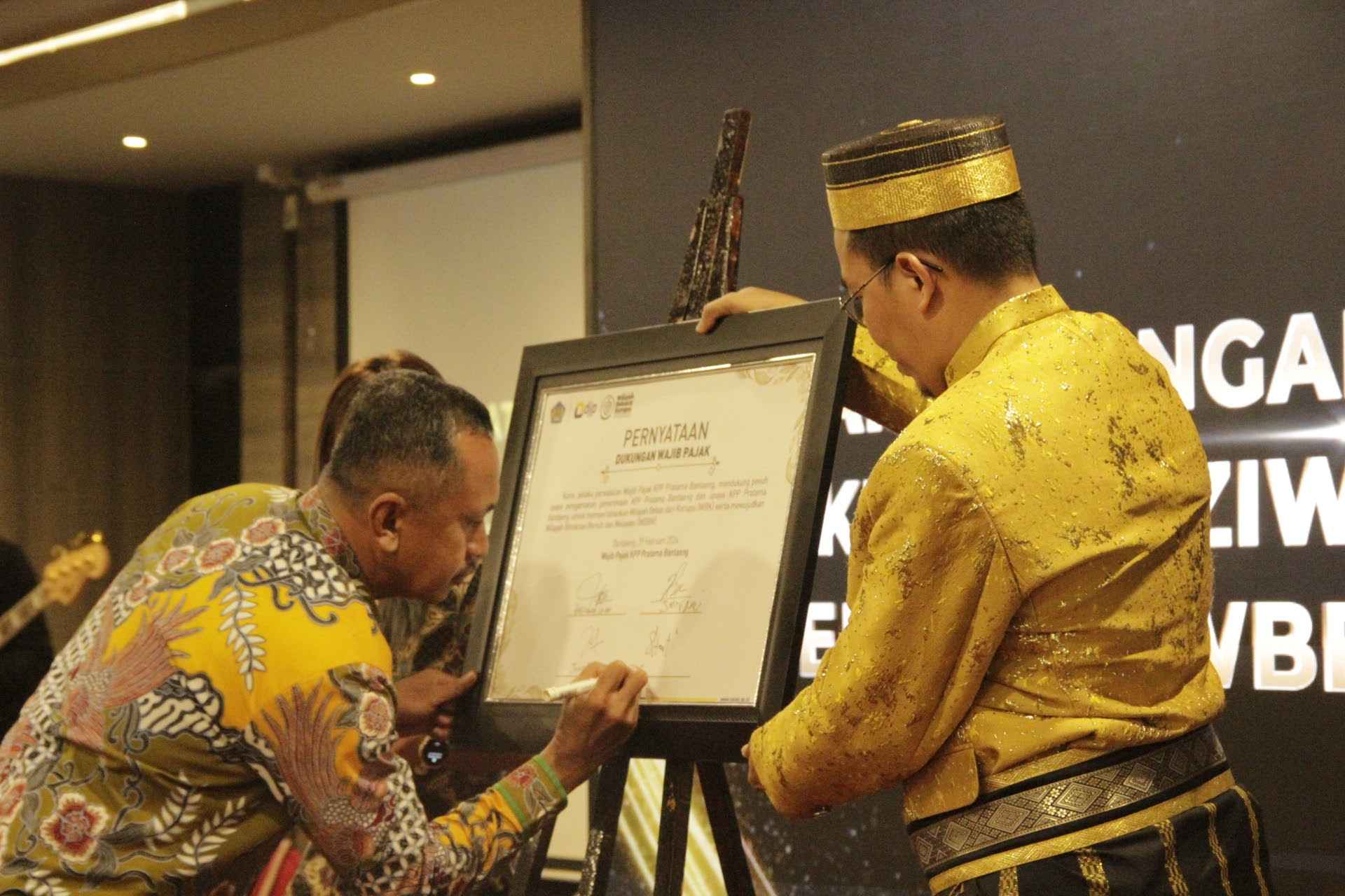 Melanjutkan apa yang telah disampaikan oleh Kepala KPP Pratama Bantaeng dalam sambutannya, bahwa KPP Pratama Bantaeng telah menyandang gelar Zona Integritas Wilayah Bebas Korupsi sejak tahun 2019 dan akan dilakukan evaluasi kembali kelayakannya. Oleh karenanya, dibutuhkan dukungan oleh seluruh Wajib Pajak. Empat perwakilan Wajib Pajak naik ke atas panggung menandatangani pernyataan dukungan KPP Pratama Bantaeng untuk mempertahankan Wilayah Bebas Korupsi serta mewujudukan Wilayah Birokrasi Bersih dan Melayani.