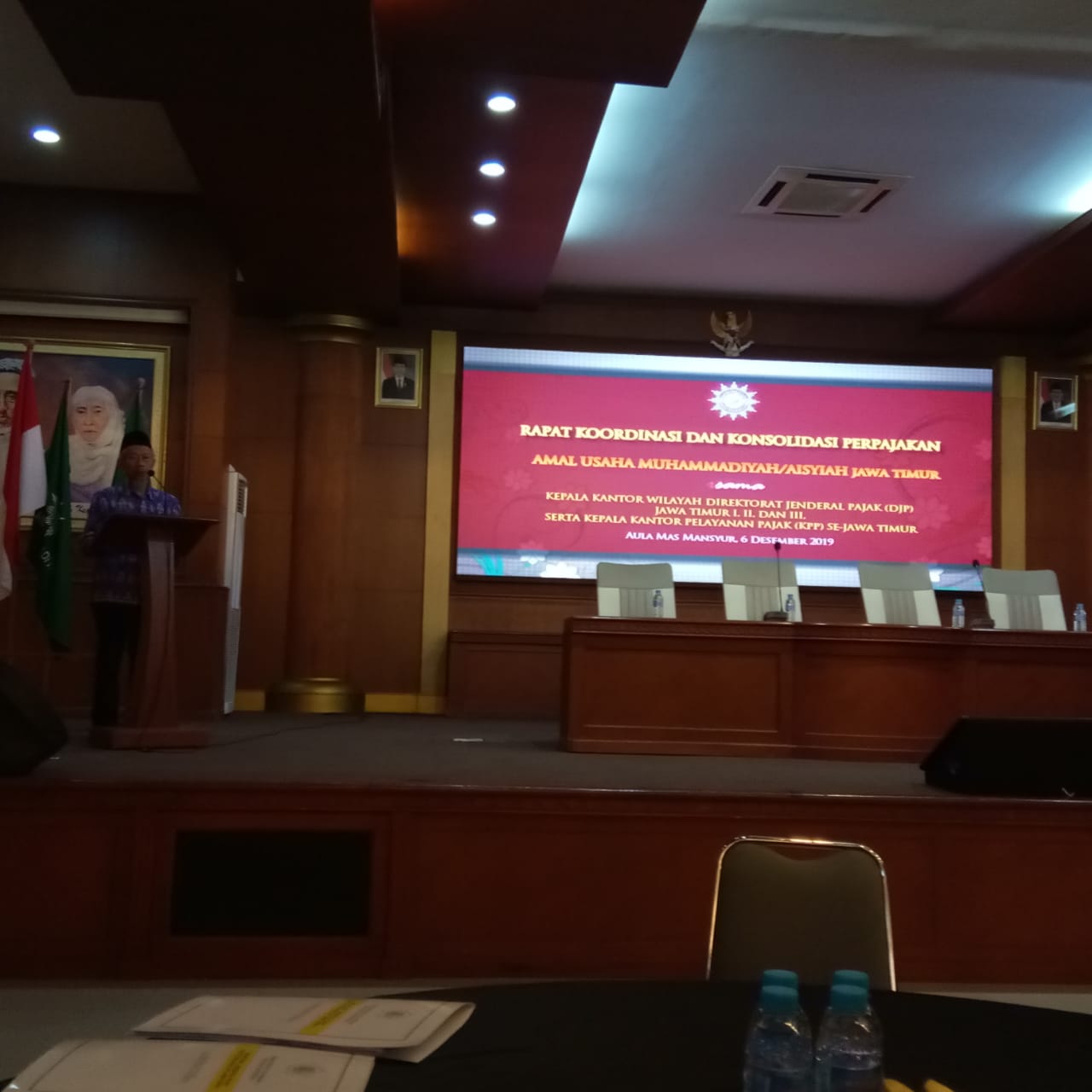 Acara yang dihadiri oleh perwakilan dari seluruh Amal Usaha Muhammadiyah (AUM) yang tersebar di wilayah Jawa Timur tersebut digelar dalam rangka memperoleh keseragaman pemahaman terkait permasalahan perpajakan yang dihadapi oleh AUM.