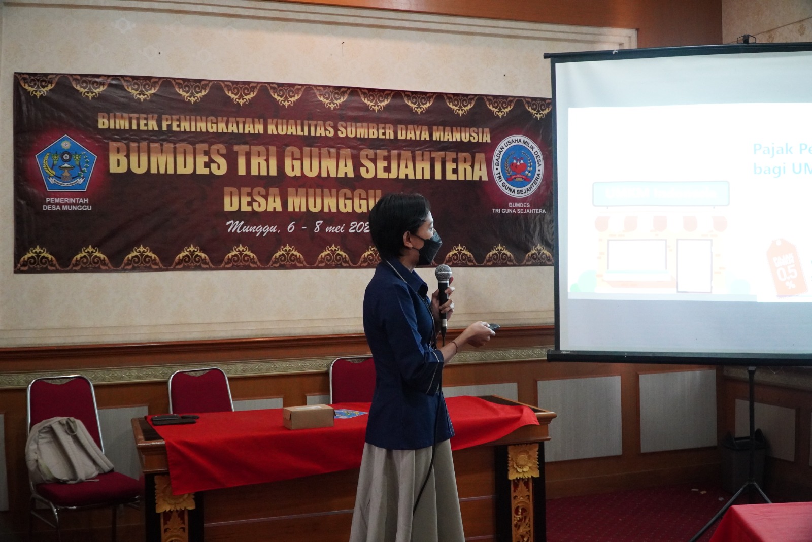 Pada bimtek kali ini, materi perpajakan dibawakan oleh Kadek Juniasih selaku Penyuluh Pajak KPP Pratama Badung Utara.