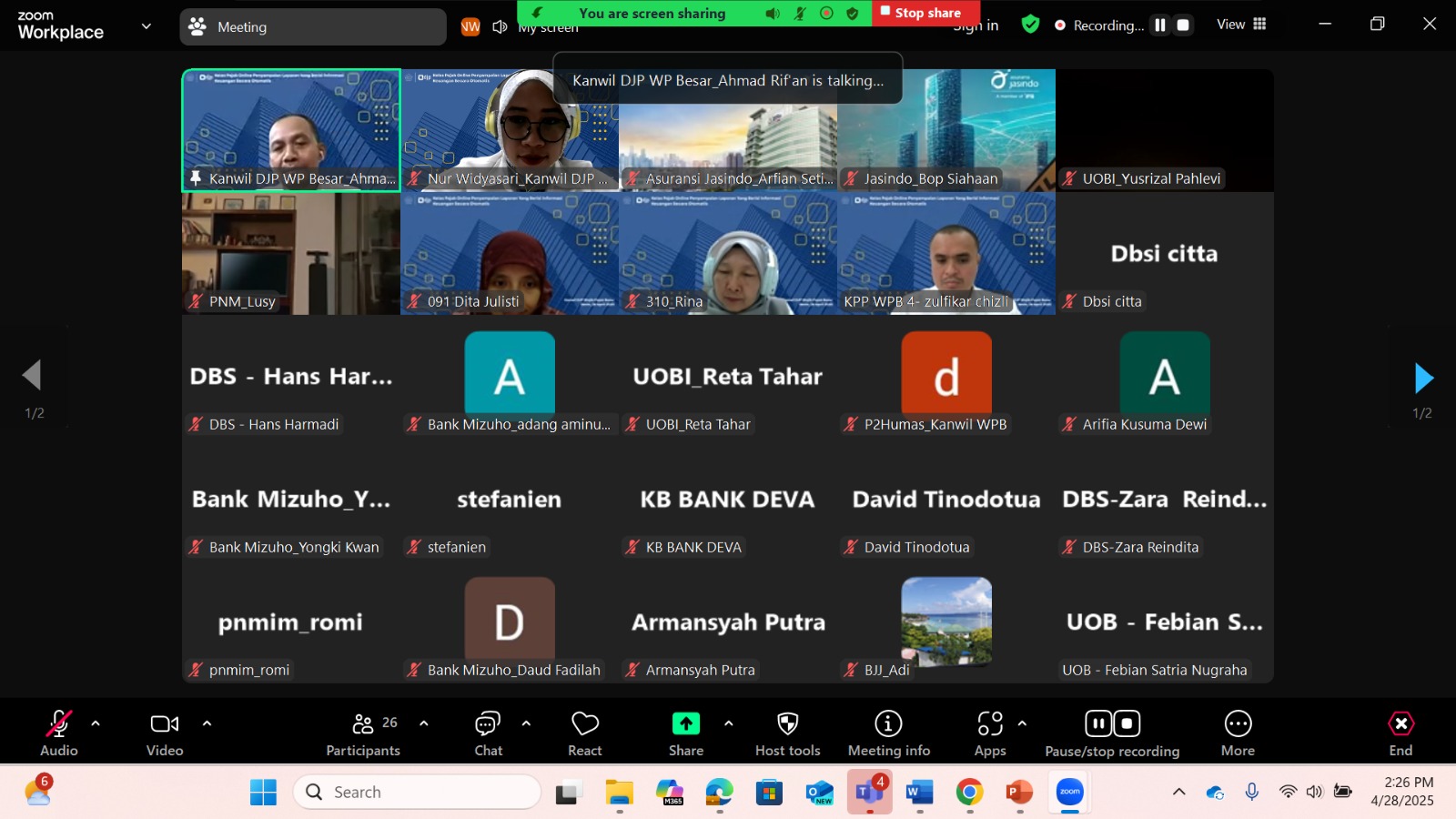 Kantor Wilayah Direktorat Jenderal Pajak Wajib Pajak Besar (Kanwil DJP WPB) menyelenggarakan Kelas Pajak bertema “Penyampaian Laporan yang Berisi Informasi Keuangan secara Otomatis (Automatic Exchange of Information/AEOI)” secara daring via aplikasi Zoom Meetings (Senin, 28/4). Kegiatan ini diikuti oleh 25 wajib pajak strategis yang terdaftar di lingkungan Kanwil DJP WPB.