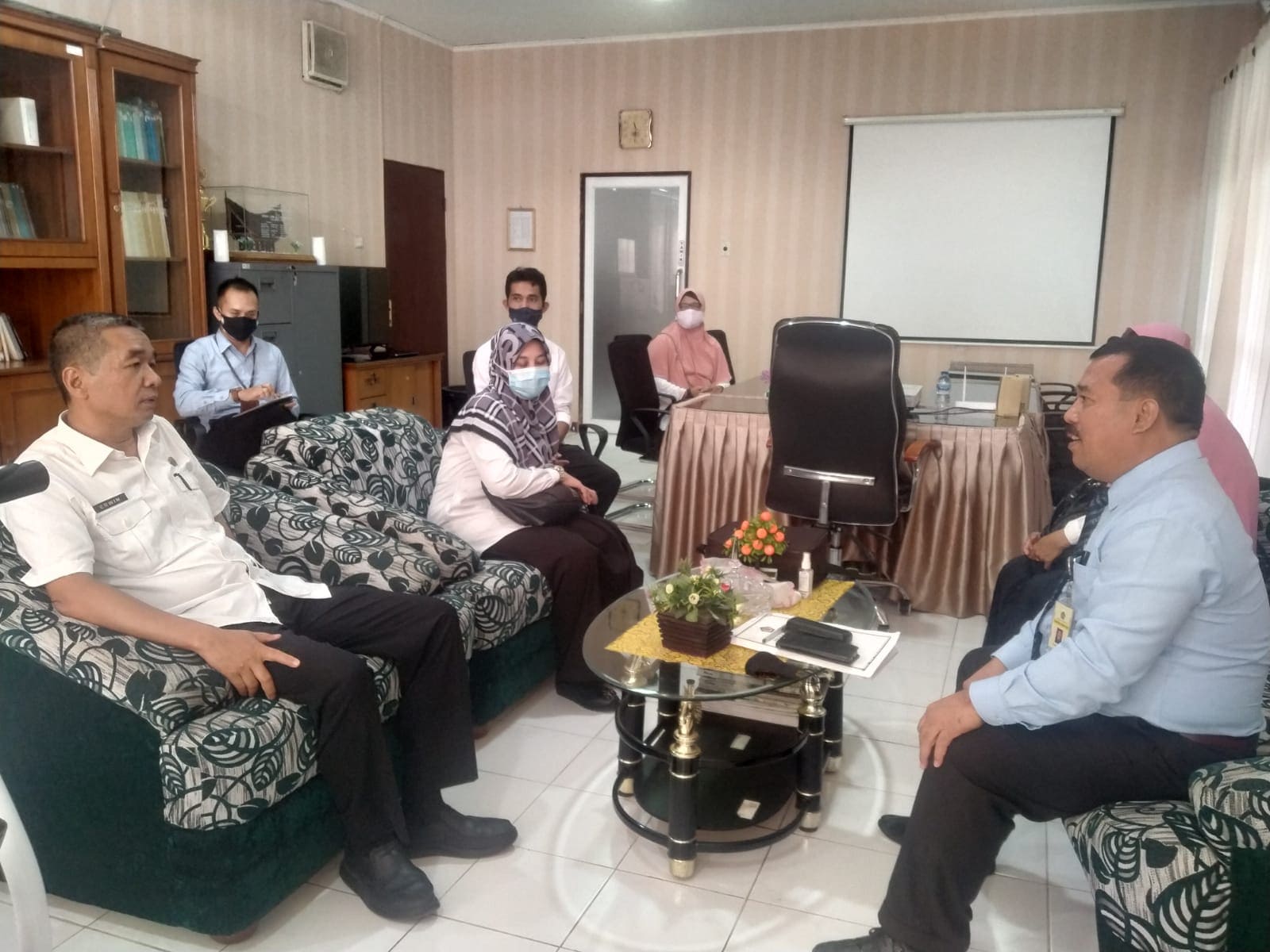 Kepala Kantor Pelayanan Pajak (KPP) Pratama Tebing Tinggi Daniel Zebua menerima kunjungan dari Kepala Badan Perencanaan Pembangunan Daerah (Bappeda) Kota Tebing Tinggi H. Erwin Suheri Damanik, S.Sos, MSP beserta staf di ruangan Kepala KPP Pratama Tebing Tinggi, Kota Tebing Tinggi, Sumatera Utara (Rabu, 1/12).
