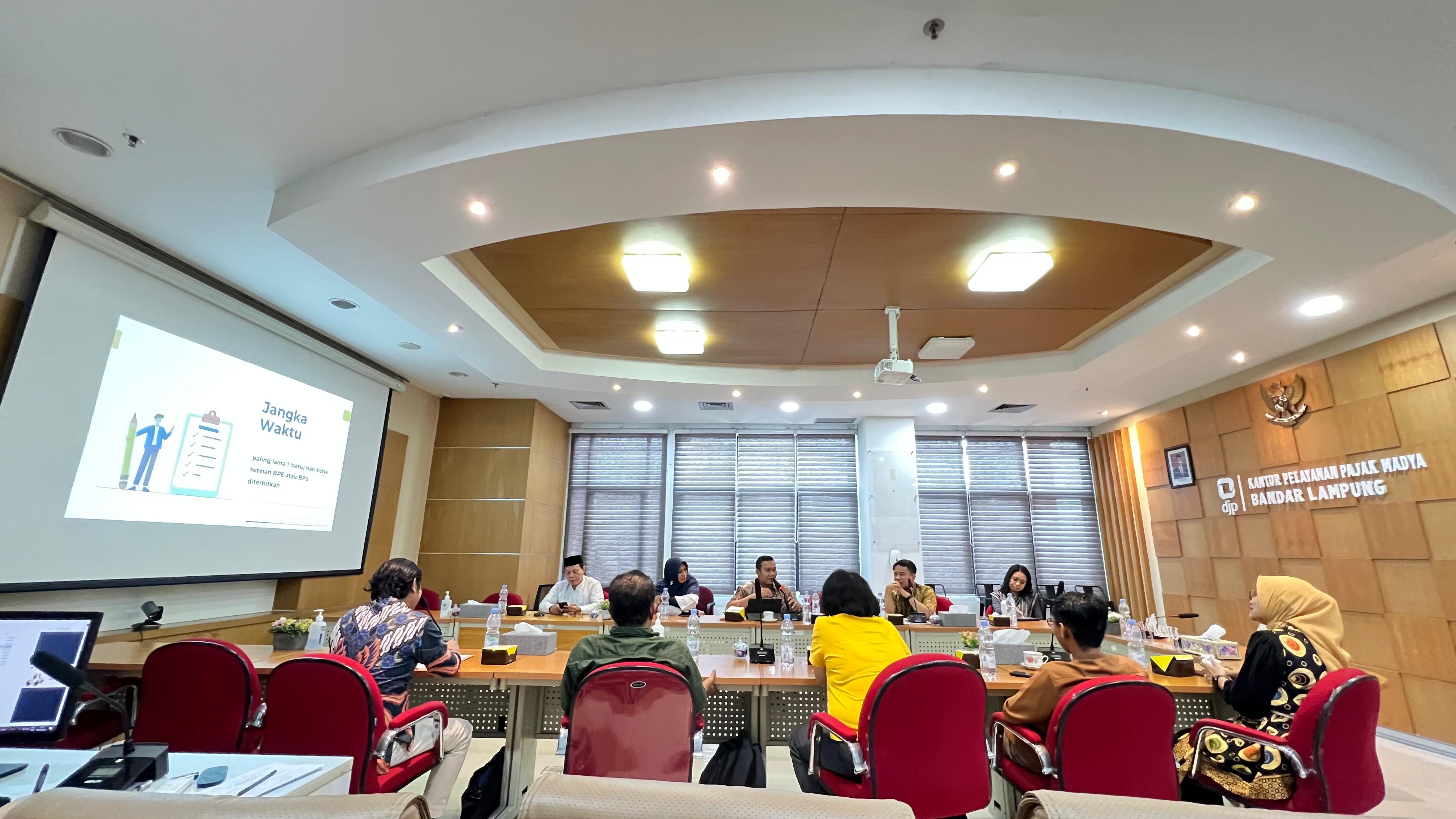 Kantor Pelayanan Pajak (KPP) Madya Bandar Lampung melaksanakan Forum Komunikasi Publik (FKP) berupa pembahasan standar pelayanan yang mengundang para pemangku kepentingan. Pada kegiatan ini, hadir pemilik usaha, akademisi, tokoh masyarakat, serta lembaga swadaya masyarakat. Kegiatan dimulai pada pukul 09.00 WIB dan berlangsung selama dua jam yang dilaksanakan dalam Ruang Rapat KPP Madya Bandar Lampung, Jl. Pangeran Emir M Noer No. 5A, Sumur Putri, Telukbetung Utara, Kota Bandar Lampung, Provinsi Lampung (Jumat, 30/8).