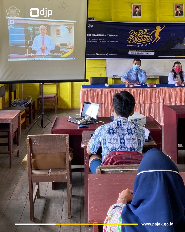 Kantor Pelayanan, Penyuluhan, dan Konsultasi Perpajakan (KP2KP) Kasongan menggelar kegiatan Pajak Bertutur secara tatap muka dengan prokes kesehatan di SMP Negeri 1 Katingan Tengah di Tumbang Samba (Rabu, 25/8). Kegiatan yang mengangkat tema “Sehari Mengenal, Selamanya Bangga” ini diikuti oleh siswa-siswi dari SMP Negeri 1 Katingan Tengah.
