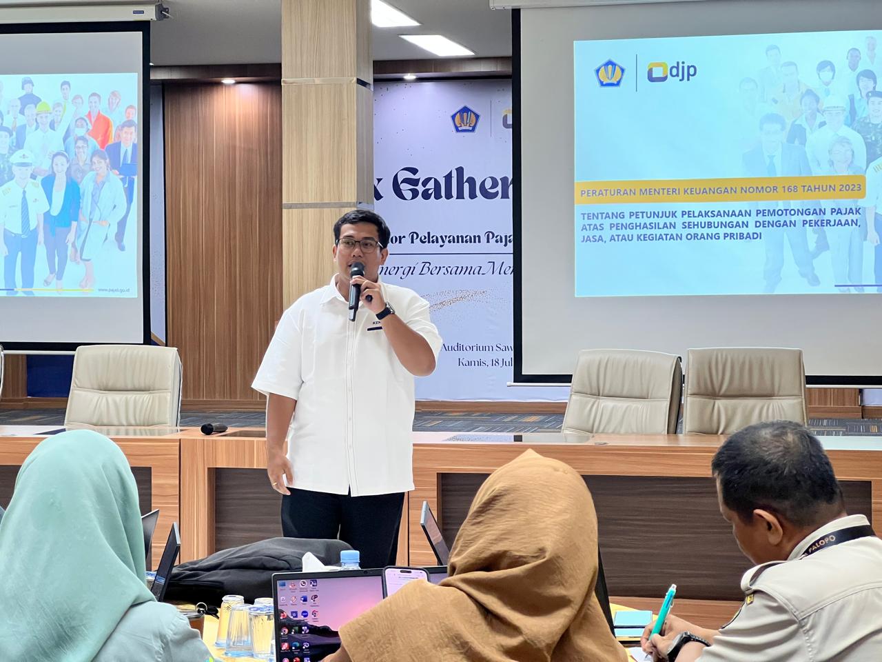Kantor Pelayanan Pajak (KPP) Pratama Palopo mengadakan sosialisasi secara tatap muka kepada bendahara Puskesmas se-Kota Palopo perihal Peraturan Menteri Keuangan Nomor 168 Tahun 2023 tentang Petunjuk Pelaksanaan Pemotongan Pajak atas Penghasilan Sehubungan dengan Pekerjaan, Jasa, atau Kegiatan Orang Pribadi serta penyampaian mengenai tata cara pembuatan e-Bupot bagi subunit instansi di Aula Sawerigading Lantai 3 KPP Pratama Palopo (Senin, 21/10).