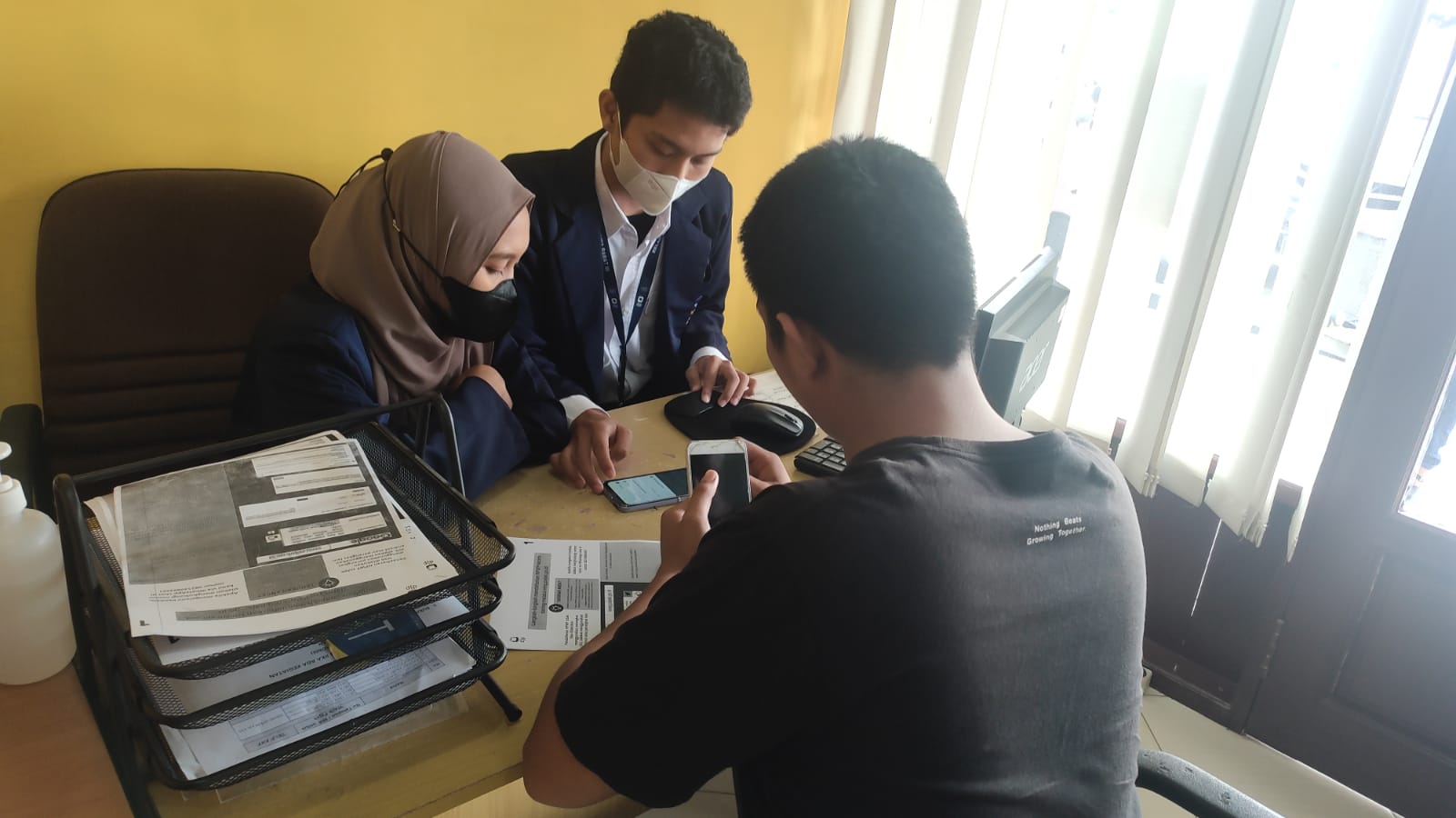 Mahasiswa magang hadir membantu asistensi wajib pajak yang ingin mendaftakan NPWP Orang Pribadi di Kantor Pelayanan Penyuluhan dan Konsultasi Perpajakan (KP2KP) Sangatta Kab. Kutai Timur (Jumat, 22/7). Lima mahasiswa yang sebelumnya telah diberikan bimbingan dan arahan berasal dari Institut Agama Islam (IAI) Tazkia Bogor dari jurusan Akutansi Syariah, Manajemen Keuangan Syariah, dan Ekonomi Syariah.