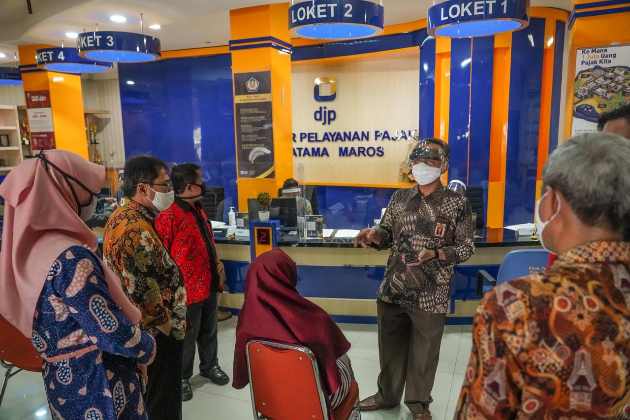 Kepala Kanwil DJP Sulawesi Selatan, Barat, dan Tenggara (Sulselbartra) Wansepta Nirwanda melakukan kunjungan kerja ke dua unit kerja Kantor Pelayanan Pajak (KPP) Pratama dalam rangka peninjauan pelaksanaan layanan tanpa tatap muka (Selasa, 16/6). Dua unit kerja yang disambangi pada peninjauan kali ini yakni KPP Pratama Makassar Barat di Kota Makassar dan KPP Pratama Maros di Kabupaten Maros.
