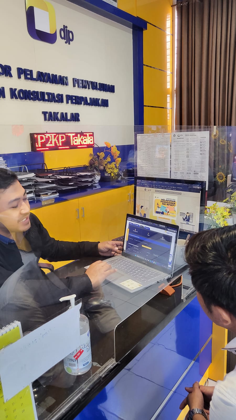Bendahara Desa Bontolanra mendatangi loket Tempat Pelayanan Terpadu (TPT) Kantor Pelayanan, Penyuluhan, dan Konsultasi Perpajakan (KP2KP) Takalar di Jalan Badaming Dg Rani No.12, Lingkngan Kalampa, Kelurahan Kalabbirang, Kecamatan Pattallassang, Kabupaten Takalar (Rabu, 13/9). Kedatangan Bendahara Desa Bontolanra dalam rangka untuk melakukan asistensi penggunaan aplikasi e-Bupot.