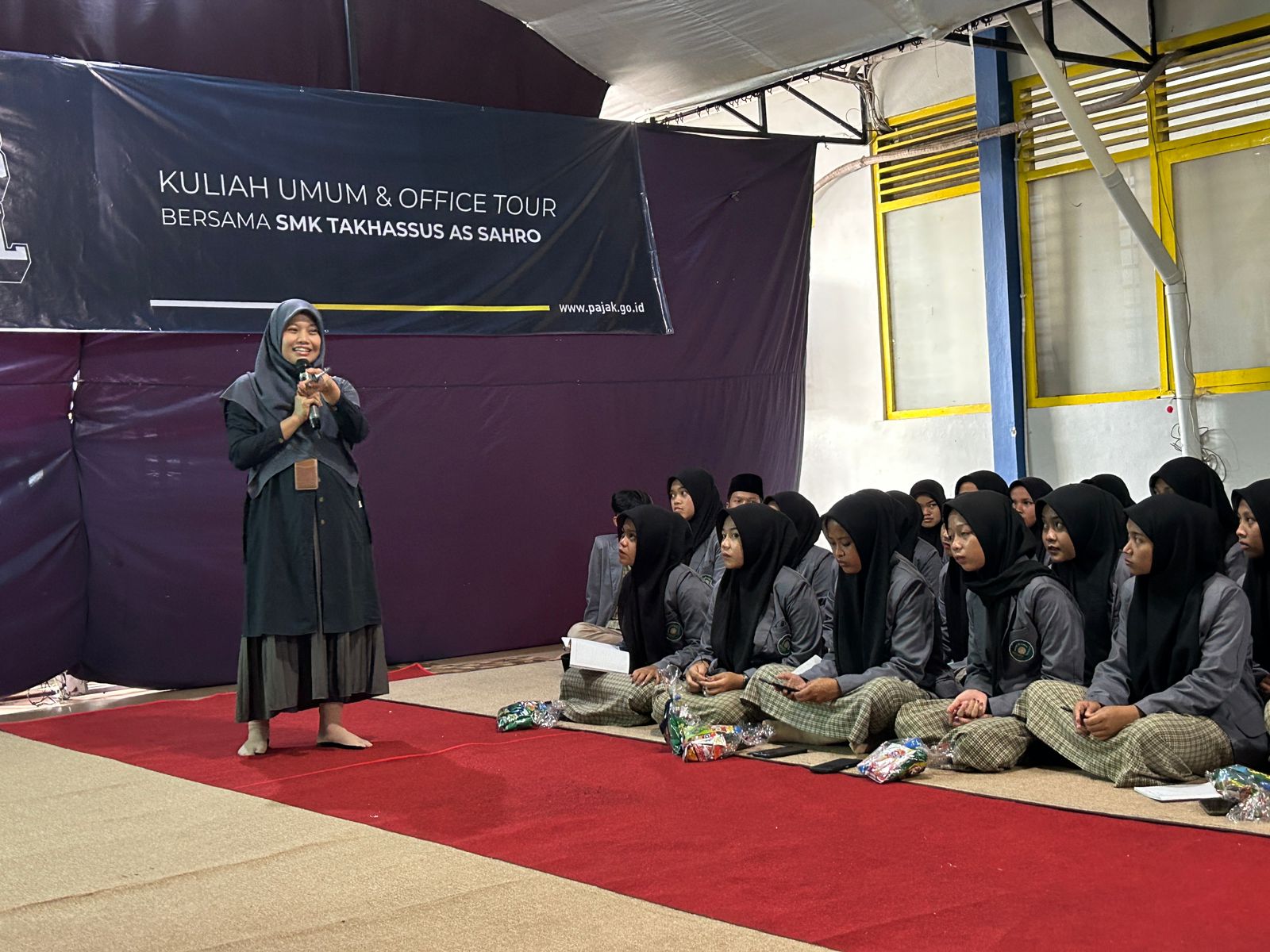 “Sebagai gambaran jika nanti adik-adik sudah besar, dan membayar pajak sebesar 1 juta rupiah maka akan dialokasikan ke berbagai bidang, seperti kesehatan, pertahanan, ekonomi, pelayanan umum, perlindungan lingkungan hidup, keagamaan, pariwisata, keamanan dan ketertiban, perlindungan sosial. Nah dapat kita lihat sebesar 76.000 dari 1 juta uang pajak dialokasikan untuk bidang pendidikan. Pemerintah memberikan beasiswa pendidikan diantara dengan program KIP-Kuliah, Kartu Indonesia Pintar, dan Beasiswa Indonesia Maju,’’ jelas Isna.