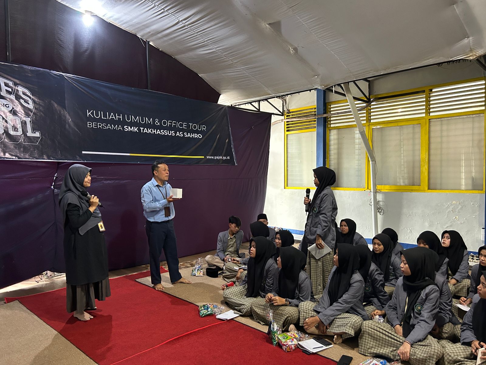 Kegiatan diawali dengan pemberian sambutan dari Kepala Seksi Pelayanan, Rina Setyawati Lestari dilanjutkan sambutan dari Kepala SMK Takhassus As Sahro, Fahrudin.
