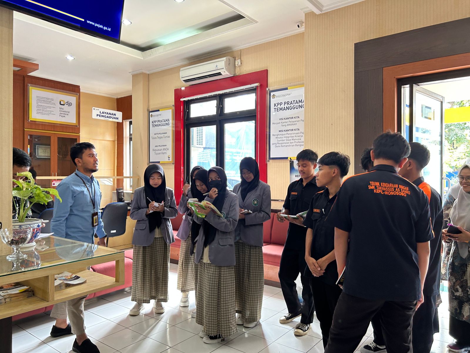Kantor Pelyanan Pajak (KPP) Pratama Temanggung mendapatkan kunjungan dari puluhan siswa Sekolah Menengah Kejuruhan (SMK) Takhassus As Sahro Wonosobo (Kamis, 11/1). Sebanyak 70 (tujuh puluh) siswa jurusan Akuntansi dan Teknik Kendaraan Ringan beserta guru pendamping melakukan serangkaian kegiatan office tour salah satunya di KPP Pratama Temanggung.
