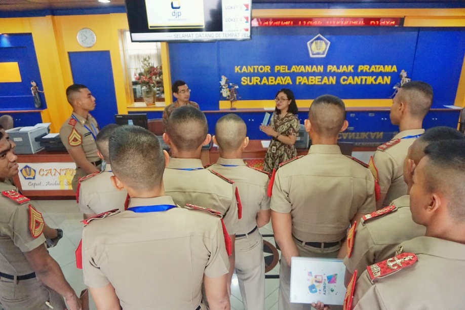 “Setelah belajar di KPP Pratama Surabaya Pabean Cantikan, kami jadi paham tentang pajak itu sendiri, mulai dari jenis pajak, tarif pajak, dan berbagai contoh pajak yang berlaku di Indonesia. Untuk kedepannya, kami akan mengkampanyekan kepada seluruh warga Indonesia agar semakin sadar pajak. Karena pajak di Indonesia digunakan untuk pembangunan negara dan kembali lagi manfaatnya untuk rakyat Indonesia itu sendiri,” ujar salah satu peserta Latihan Teknik, Sersan Suplai Tresna Aulia pada akhir kunjungannya.