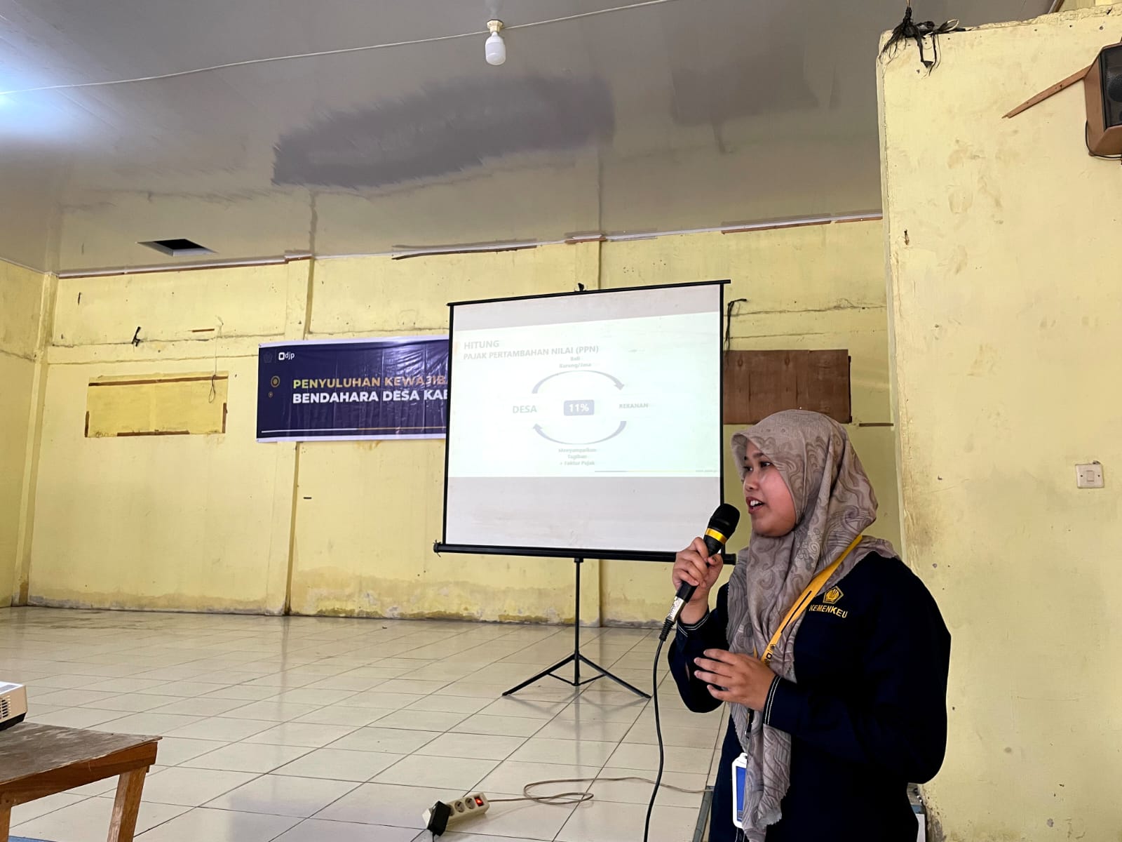 Dhana Tirta Ramadhani selaku Account Representative Seksi Pengawasan II dan Fenny Kumala Sari selaku Fungsional Asisten Penyuluh Pajak menjadi pemateri sosisalisasi pada acara ini. Mereka memaparkan administrasi apa saja yang harus diurus oleh bendahara desa terkait perpajakan dalam pengelolaan dana desa.