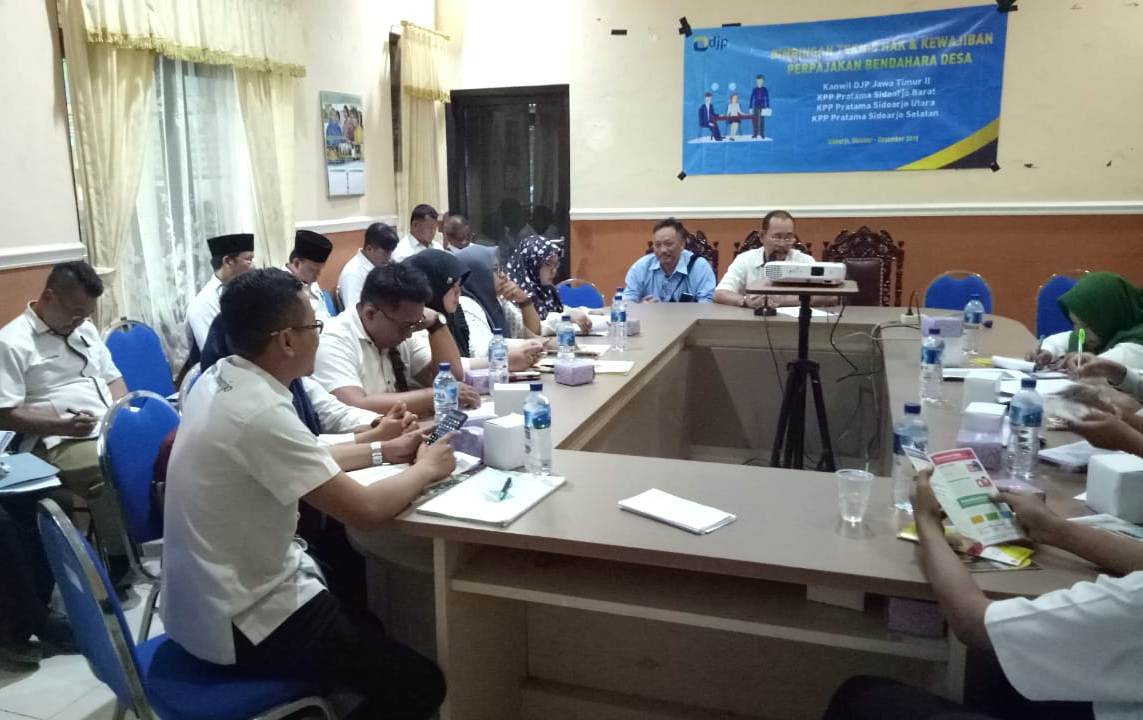 Dalam sambutannya Ammaruddin Arif Zakaria selaku perwakilan KPP Pratama Sidoarjo mengatakan bahwa kegiatan tersebut bertujuan untuk meningkatkan kompetensi bendahara dalam mengelola dana desa khususnya mengenai tata cara pemotongan dan pemungutan pajak atas tagihan dibayarkan oleh bendahara.