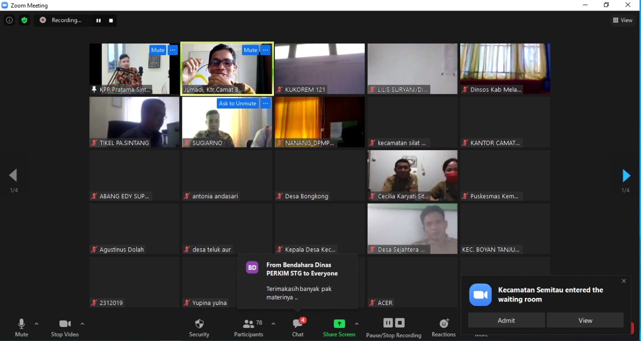 Kantor Pelayanan Pajak (KPP) Pratama Sintang mengadakan sosialisasi secara webinar dengan tema "Administrasi Perpajakan Bagi Instansi Pemerintah PMK Nomor 231/PMK.03/2019" menggunakan media Zoom Meeting di ruang Rapat KPP Pratama Sintang. Sekitar 100 peserta dari Bendahara Instansi Pemerintah di lingkup wilayah kerja Kabupaten Sintang, Melawi, serta Kapuas Hulu mengikuti kegiatan ini (Selasa, 15/9).