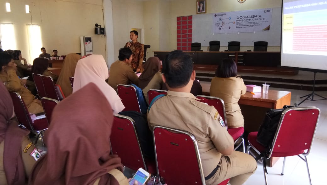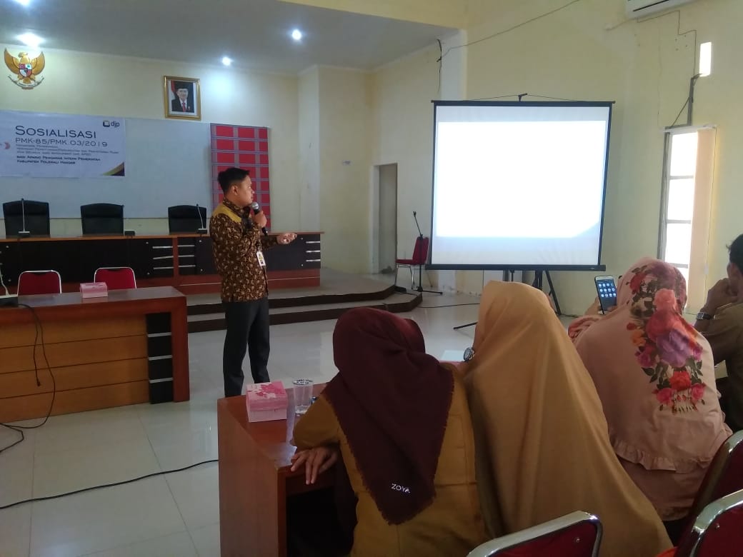 Kantor Pelayanan Penyuluhan dan Konsultasi Perpajakan (KP2KP) Polewali mengadakan Sosialisasi Perpajakan terkait PMK-85/PMK.03/2019 (Selasa, 24/9). Bertempat di Ruang Pola Kantor Bupati Kabupaten Polewali Mandar, kegiatan ini diikuti oleh Bendahara Organisasi Perangkat Daerah (OPD) se-Kabupaten Polewali Mandar.