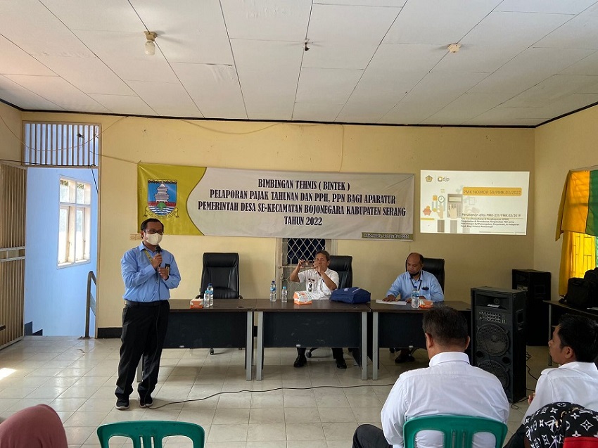 Kantor Pelayanan Pajak (KPP) Pratama Serang Timur mendapatkan undangan untuk menjadi narasumber kegiatan bimbingan teknis e-Bupot Unifikasi di Kecamatan Bojonegara, Kabupaten Serang (Rabu, 10/8).