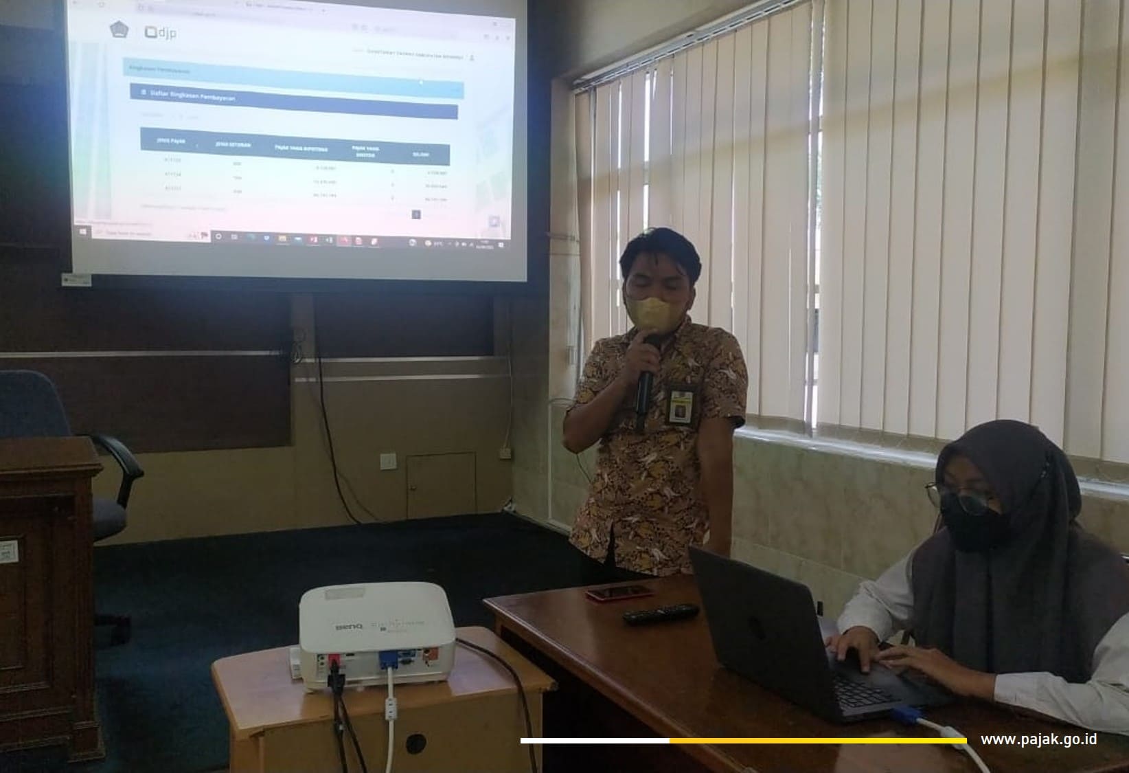 Kantor Pelayanan Pajak (KPP) Pratama Sidoarjo Selatan menyelenggarakan kegiatan edukasi perpajakan kepada 21 bendahara pemerintah yang merupakan perwakilan dari beberapa sub unit kerja yang ada di lingkungan kantor Sekretariat Daerah Kabupaten Sidoarjo (Selasa, 24/5). Kegiatan ini dilaksanakan secara tatap muka di ruang aula lantai 3 kantor Sekretariat Daerah Sidoarjo, Kabupaten Sidoarjo.