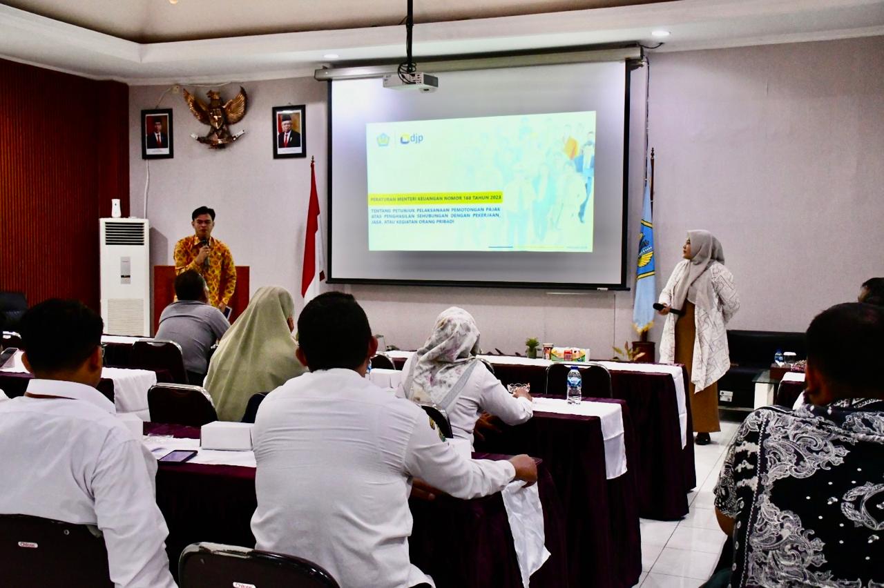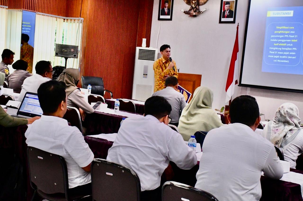 Penyuluh Kantor Pelayanan Pajak (KPP) Pratama Blora, Ehud Rengkuh Riyanta dan Alam Amitiara menjadi narasumber acara Sosialisasi Penghitungan Pajak Penghasilan (PPh) Pasal 21 Menggunakan Tarif Efektif Rata-Rata (TER) di Kantor Pelayanan Perbendaharaan Negara (KPPN) Purwodadi (Selasa, 21/5).