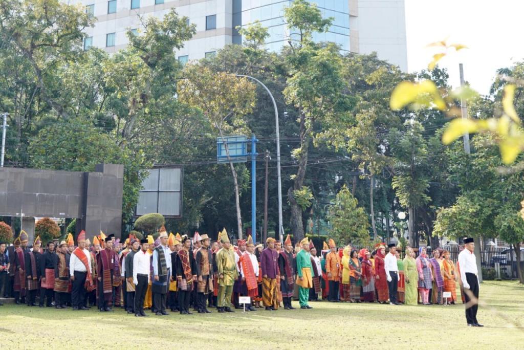 Berbalut baju tradisional dari berbagai wilayah Indonesia menyiratkan bahwa para peserta upacara siap melanjutkan cita-cita luhur pendiri bangsa kita, yaitu menjaga dan memelihara persatuan dan kesatuan di dalam keberagaman. Hal ini sejalan dengan tema HORI tahun ini "Maju Bersama, Menghadapi Tantangan".