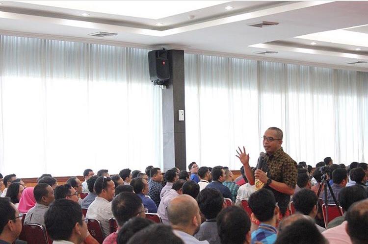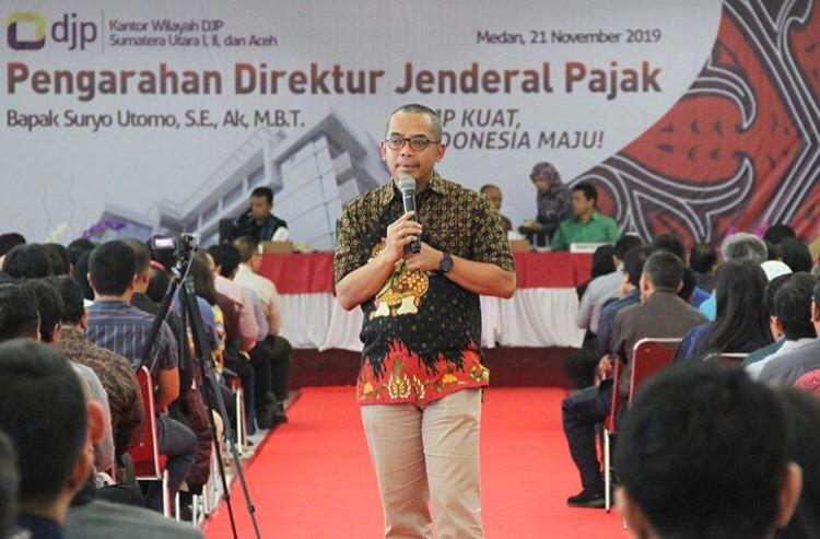 Direktur Jenderal Pajak, Suryo Utomo, memberikan arahan kepada 600 pegawai di lingkungan Kanwil DJP Sumatera Utara I yang bertempat di aula lantai 8, Medan (Kamis, 21/11).