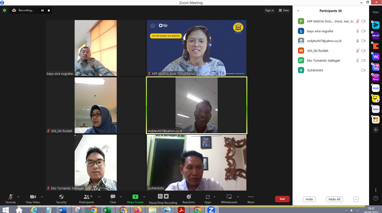 Penyuluh Kantor Pelayanan Pajak (KPP) Madya Dua Tangerang kembali mengadakan edukasi one-on-one secara daring melalui aplikasi Zoom Cloud Meeting di KPP Madya Dua Tangerang, Blok U No. 5, Jl. Scientia Boulevard, Curug Sangereng, Kecamatan Kelapa Dua, Kabupaten Tangerang, Banten (Jumat, 4/8).