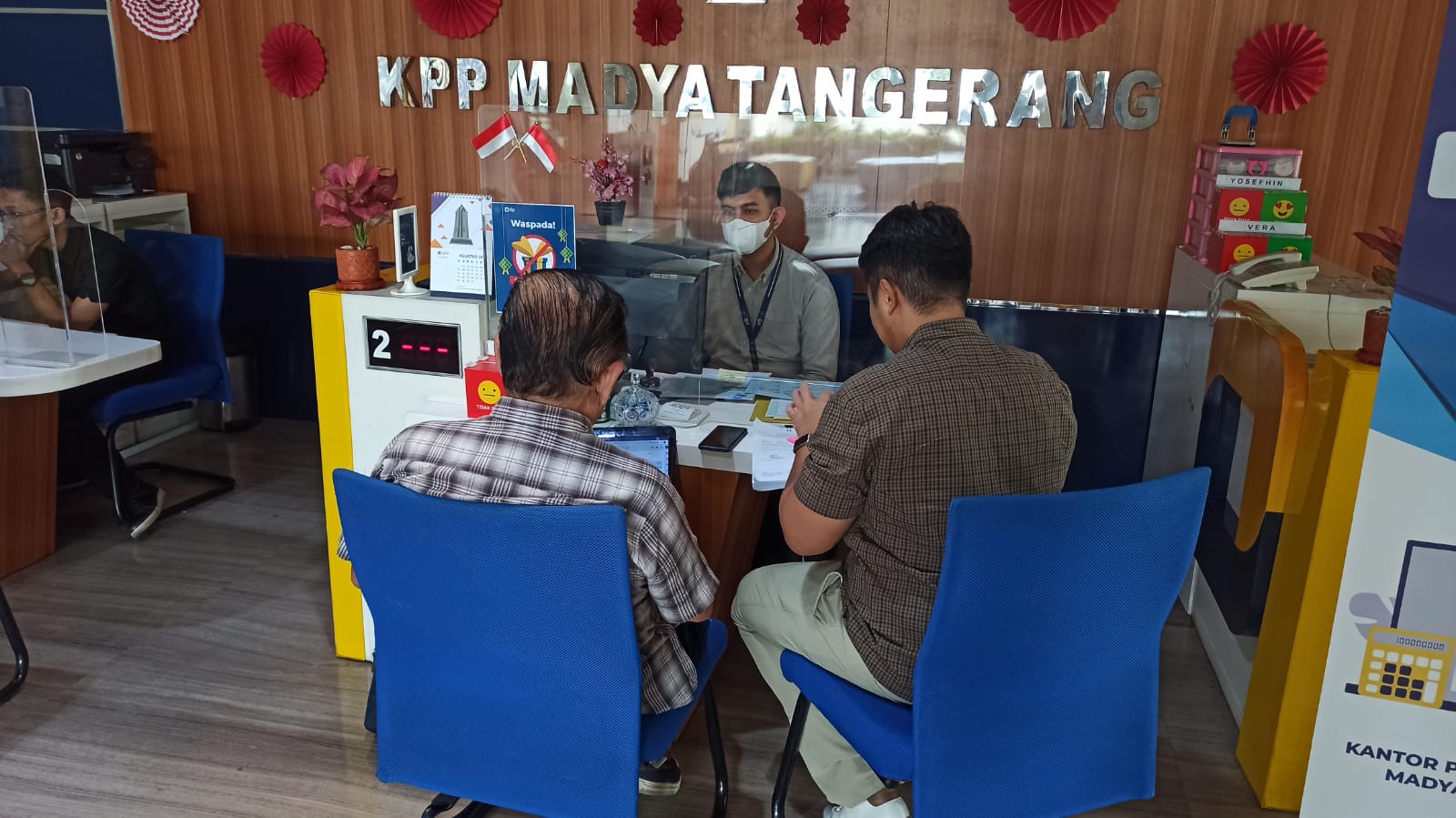 Petugas KPP Madya Tangerang Ahmad Aditya Rachdian Putra dan Rani Santhy L Sitindaon mengunjungi lokasi usaha wajib pajak untuk bertemu langsung dengan pengurus wajib pajak. Aditya menjelaskan maksud kedatangan petugas serta menanyakan gambaran umum kegiatan usaha wajib pajak untuk meneliti kesesuaian kegiatan usaha berdasarkan data dan dokumen pada surat permohonan dengan kegiatan usaha yang sebenarnya.