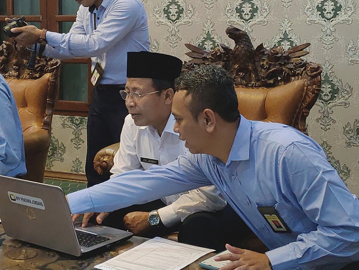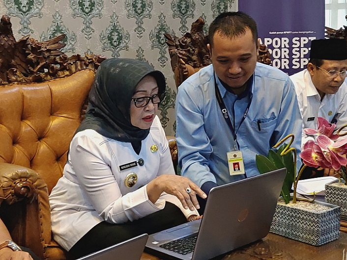 KPP Pratama Jombang malaksanakan asistensi kepada Bupati Jombang Hj. Mundjidah Wahab, Wakil Bupati Jombang Sumrambah, dan Sekretaris Daerah Kabupaten Jombang Akh. Jazuli dalam melakukan pengisian dan pelaporan SPT Tahunan PPh Orang Pribadi melalui e-Filing di Pendopo Kabupaten Jombang (Rabu, 11/3). Kegiatan ini dihadiri oleh Bupati, Wakil Bupati, Sekretaris Daerah Kab. Jombang, Kepala KPP Pratama Jombang, dan beberapa Kepala Seksi KPP Pratama Jombang.