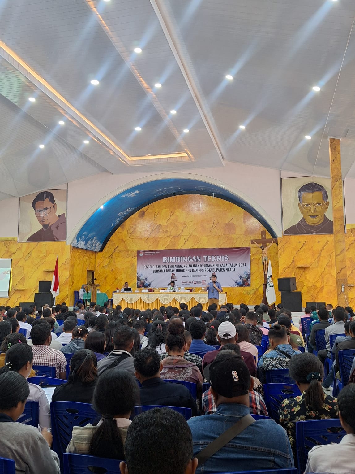 Kegiatan ini dihadiri oleh ratusan peserta dari anggota Badan Ad Hoc penyelenggara pemilihan umum di Kabupaten Ngada. Kegiatan bimtek dibuka dengan sambutan Ketua KPU Kabupaten Ngada, Stefani Octaviana Meo dan dilanjutkan dengan pemaparan materi dari masing-masing narasumber. Narasumber yang mengisi materi dalam kegiatan bimtek ini berasal dari Kejaksaan Negeri Ngada, Polres Ngada, Badan Pendapatan Daerah (BAPPENDA) Kabupaten Ngada, dan KP2KP Bajawa.