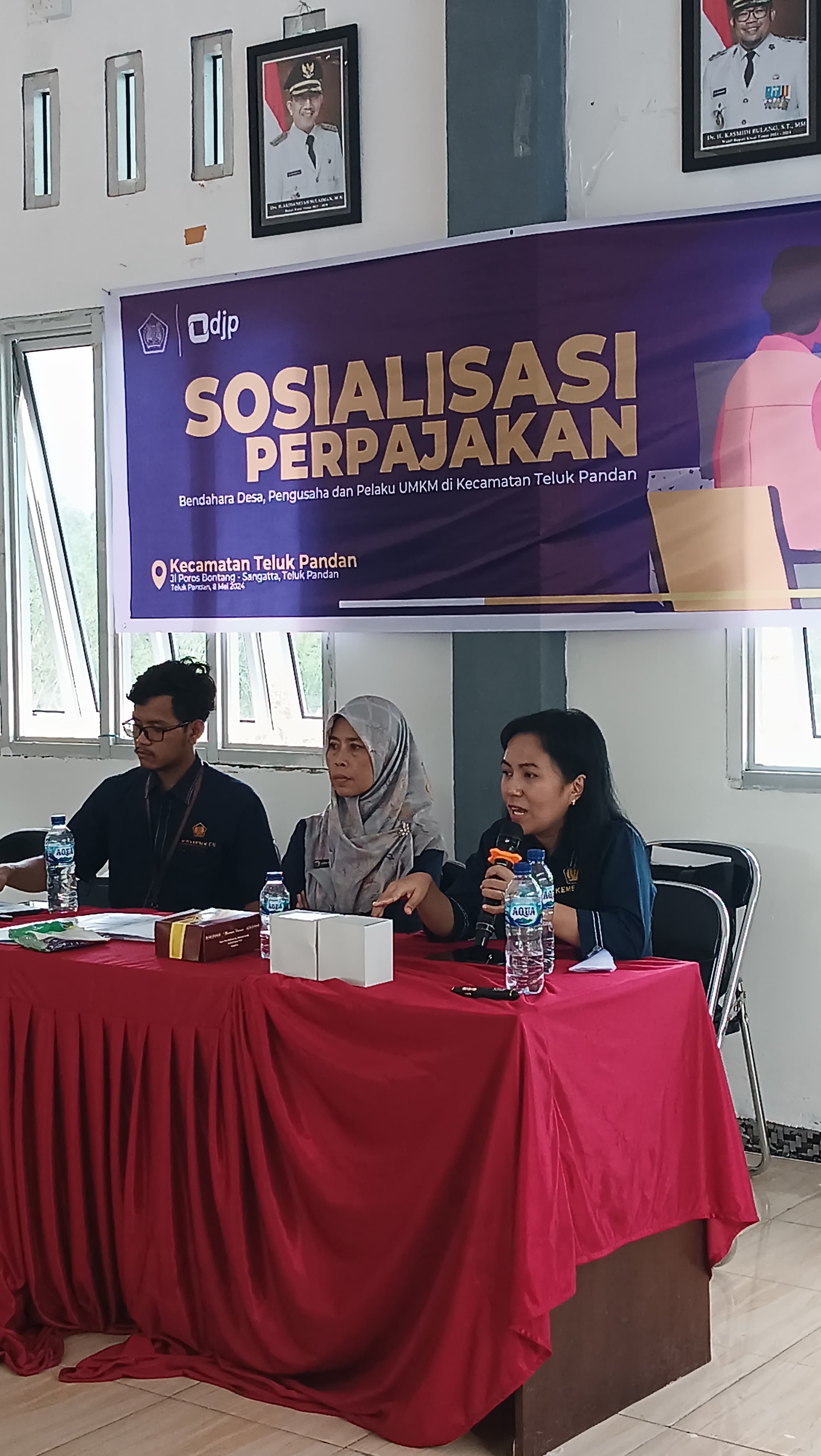 Kantor Pelayanan Pajak (KPP) Pratama Bontang bersama Kantor Pelayanan, Penyuluhan, dan Konsultasi Perpajakan (KP2KP) Sangatta menyelenggarakan kegiatan Sosialisasi Kewajiban Perpajakan Bendahara Desa dan Pelaku UMKM yang bertempat di Kantor Kecamatan Teluk Pandan, Kab. Kutai Timur (Rabu, 08/05).
