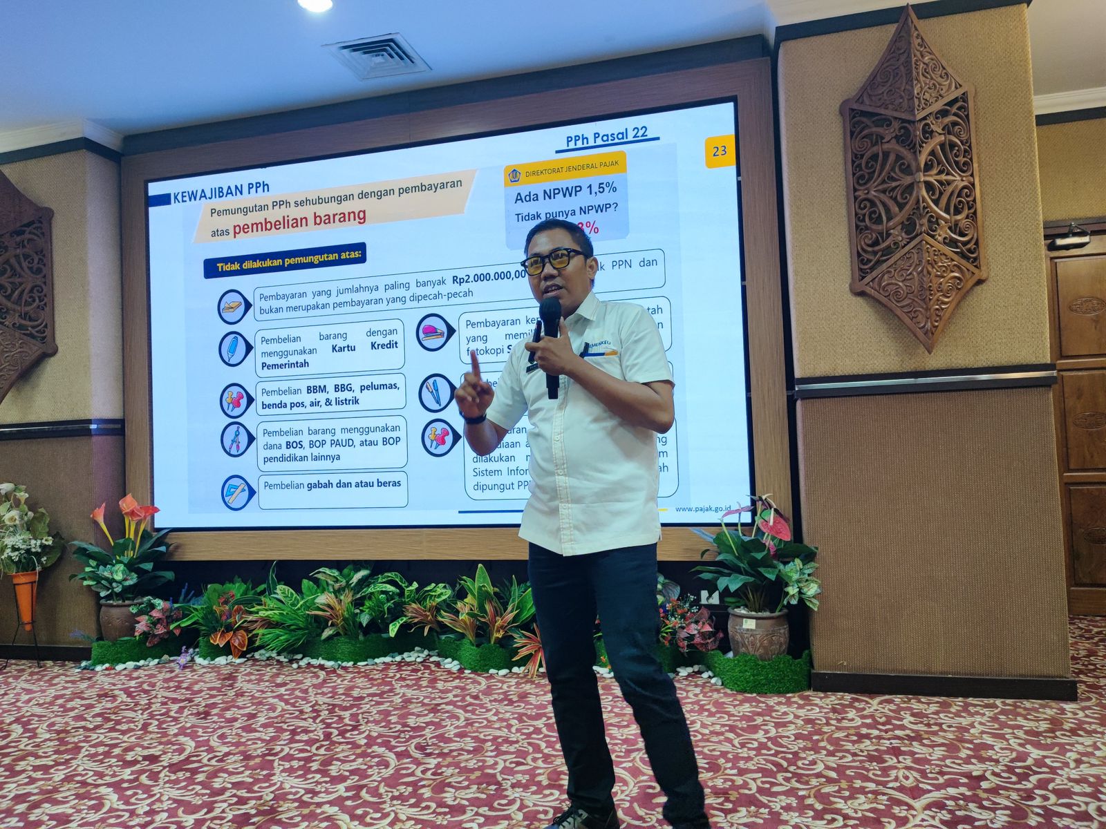 Nanang Maulana selaku penyuluh pajak KPP Pratama Bontang memberikan penyuluhan terkait Hak dan Kewajiban Perpajakan bagi Instansi Pemerintah Daerah khusunya di wilayah Kabupaten Kutai Timur seperti pelaporan, pemotongan, pemungutan, penyetoran, pemindahbukuan, dan sebagainya.